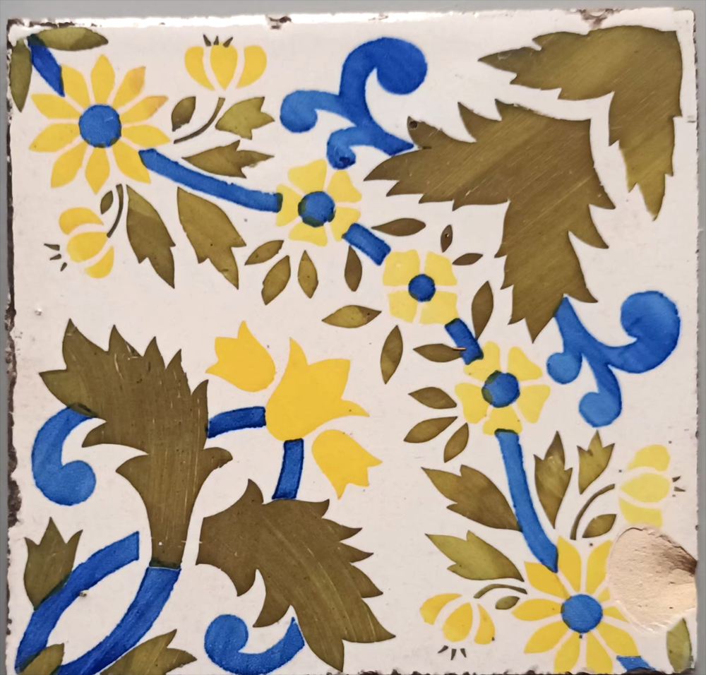 tegel van aardewerk met tinglazuur, voorstellende: l...