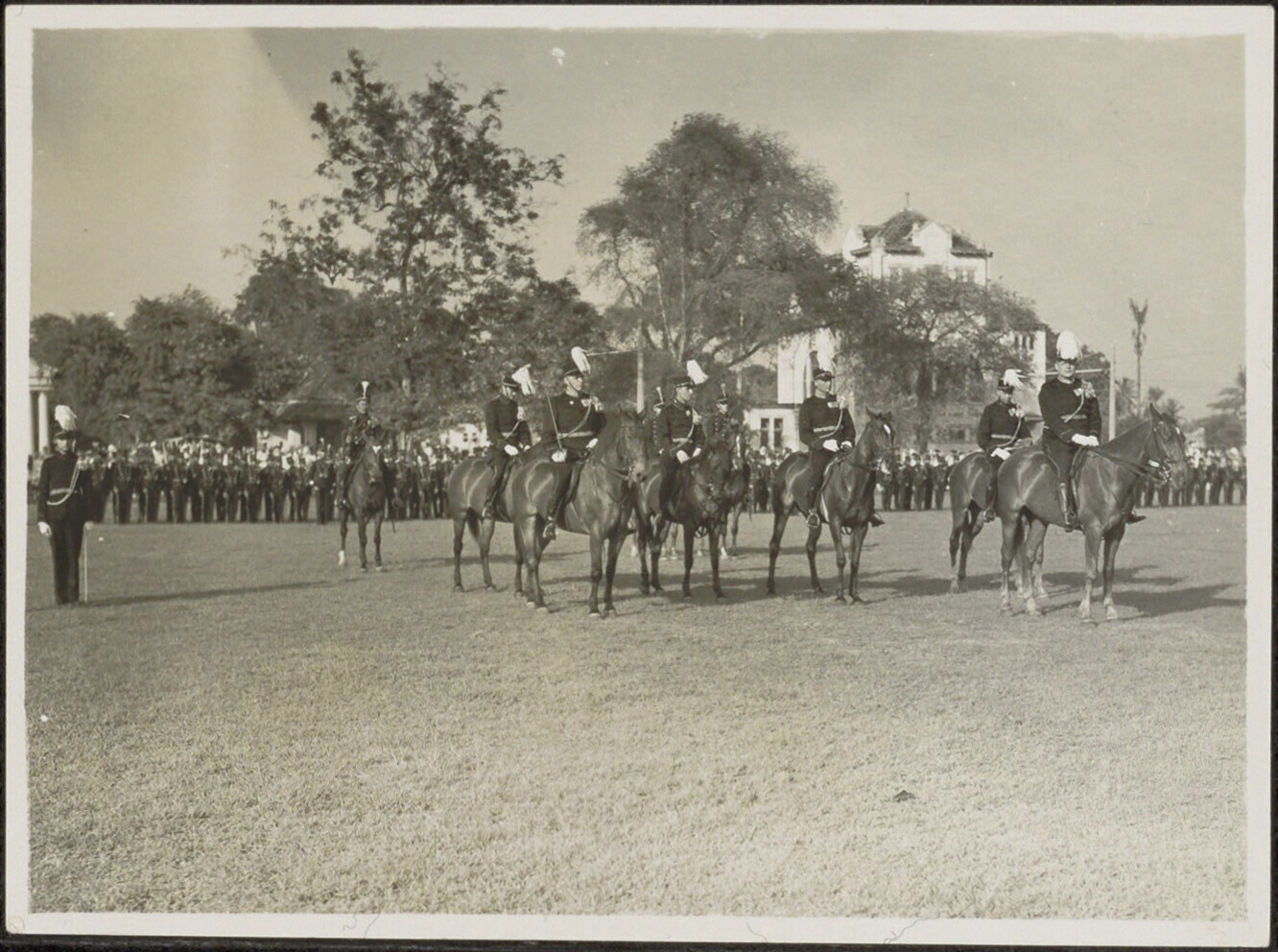 Militairen van het KNIL op patrouille bij Buitenzorg