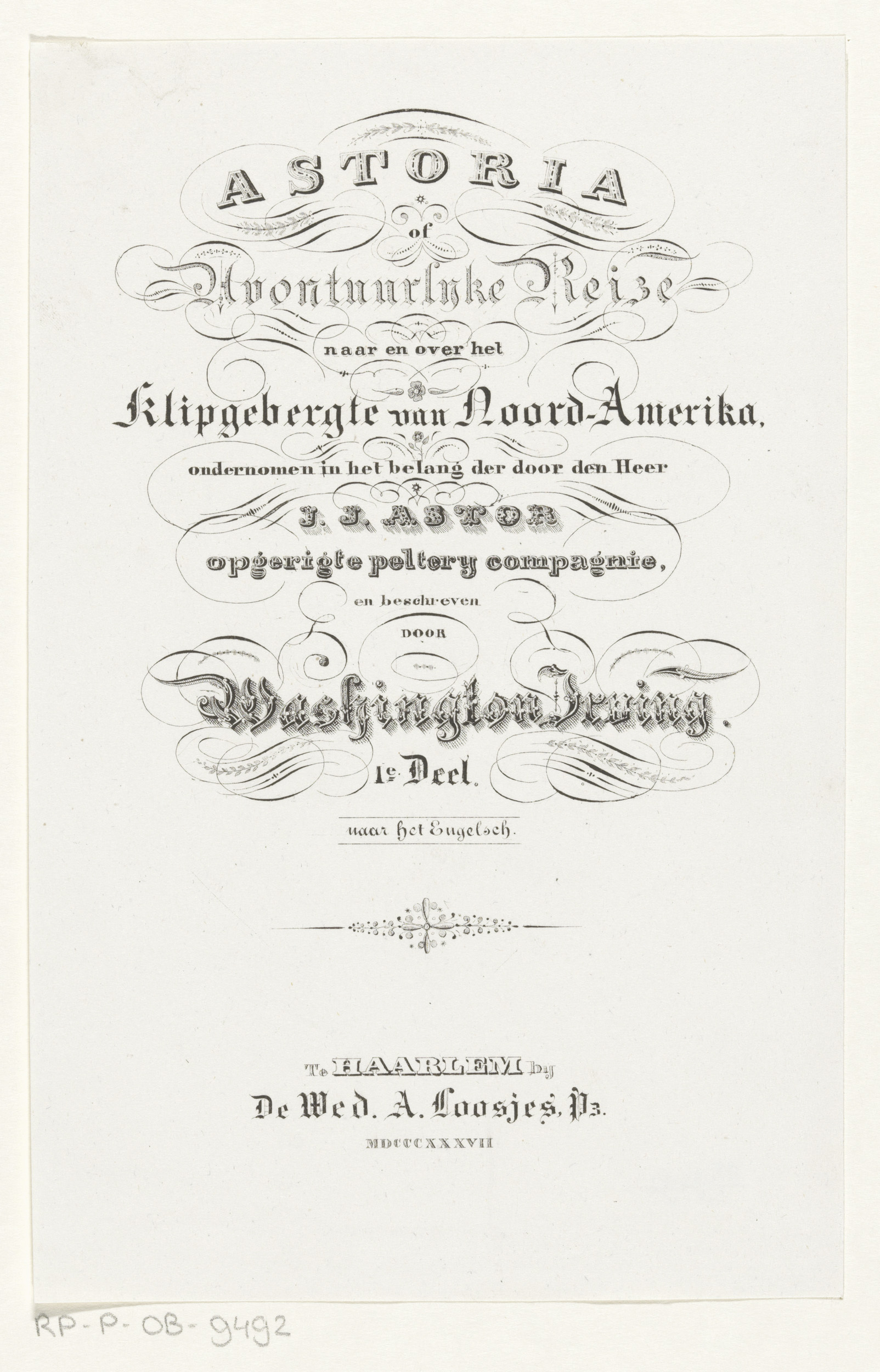 Titelpagina voor: Washington Irving, Astoria of Avon...
