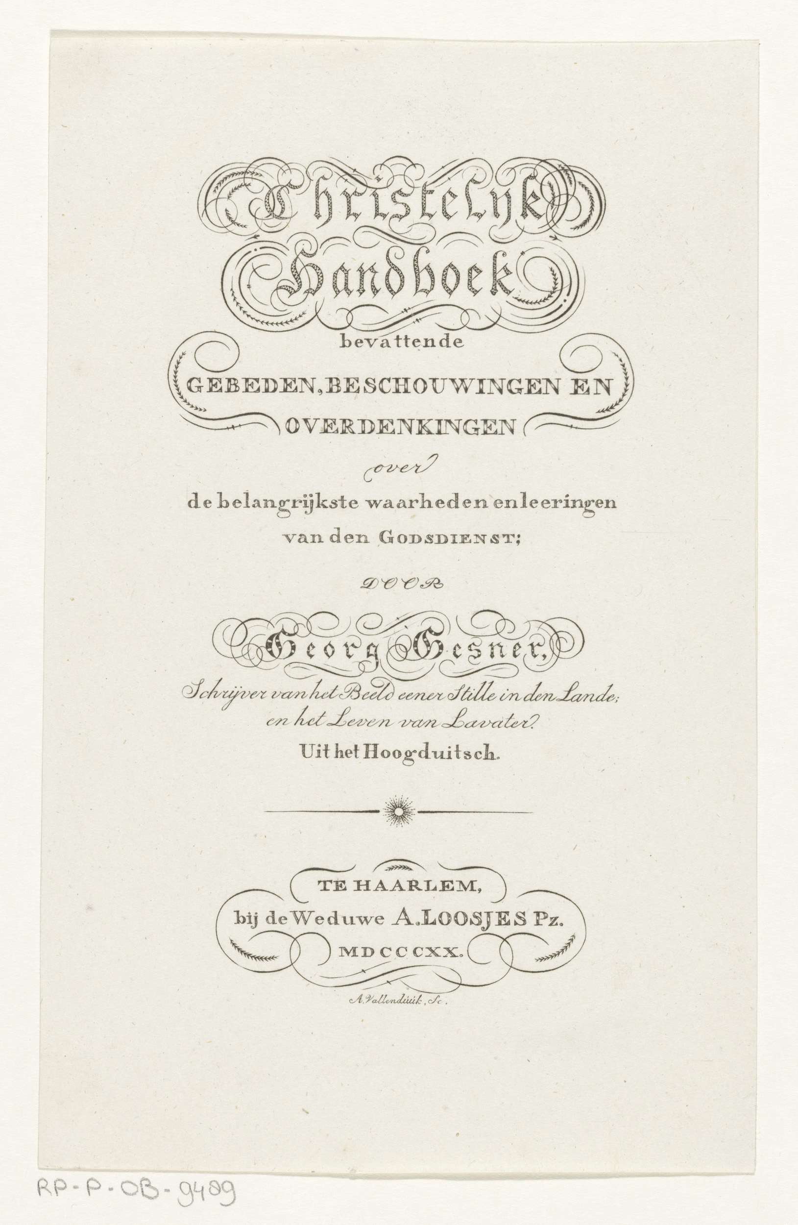 Titelpagina voor: Georg Gesner, Christelijk handboek...