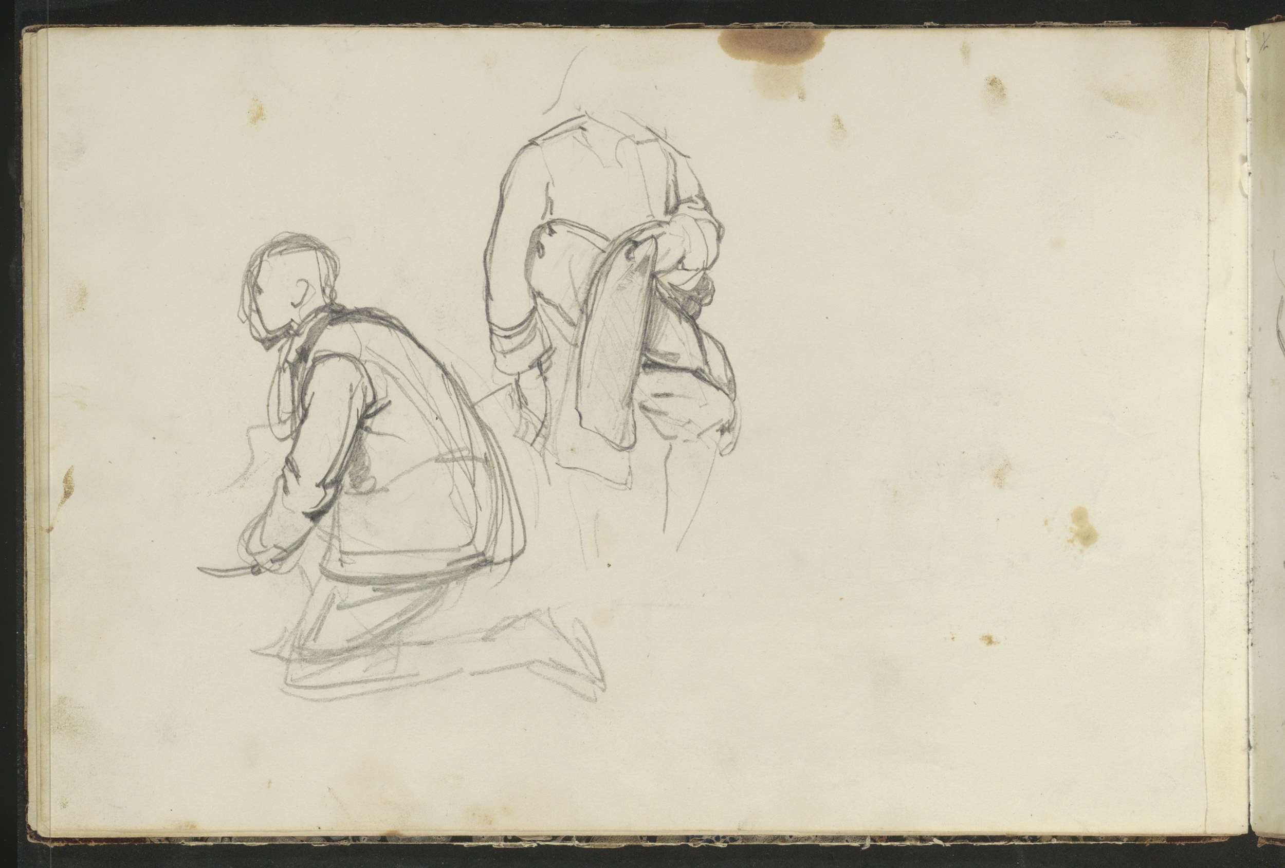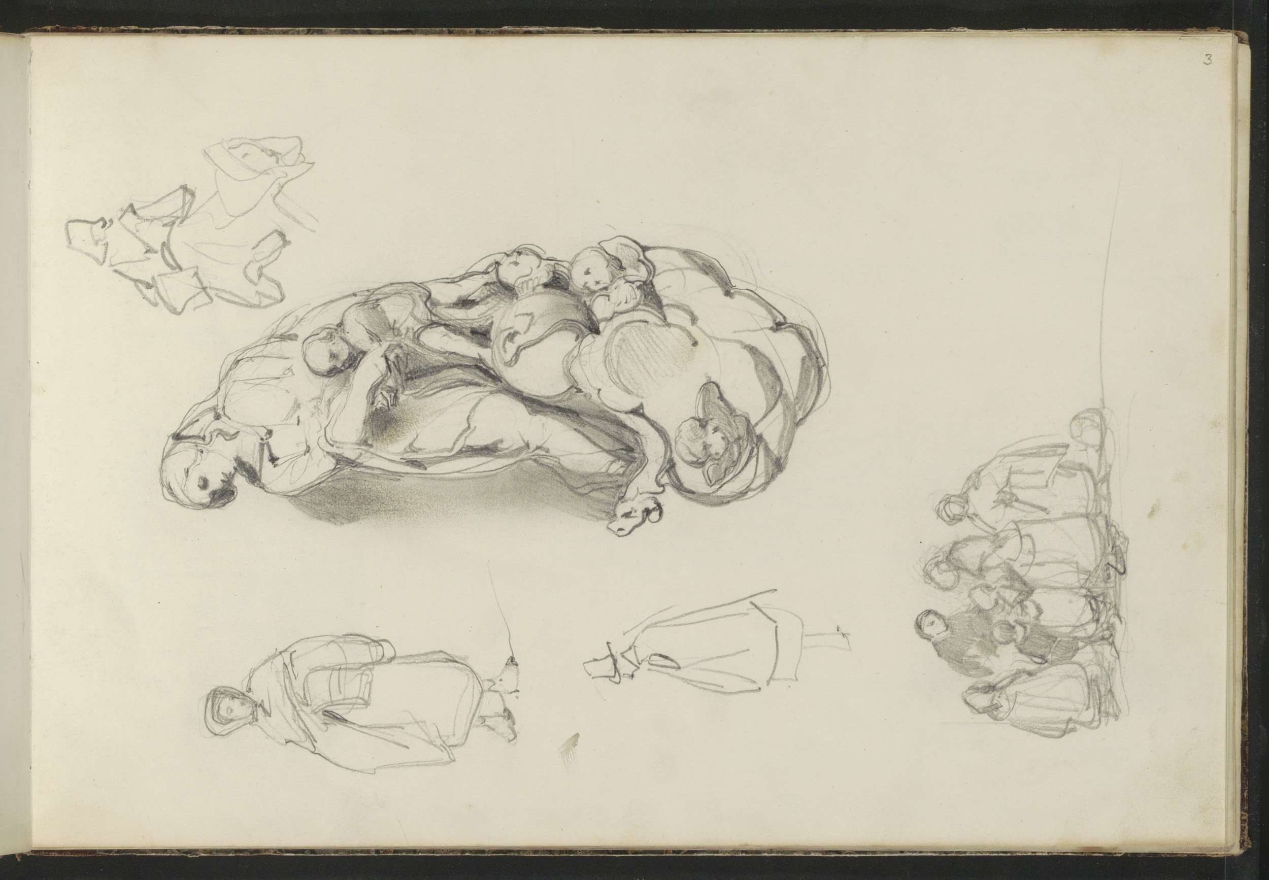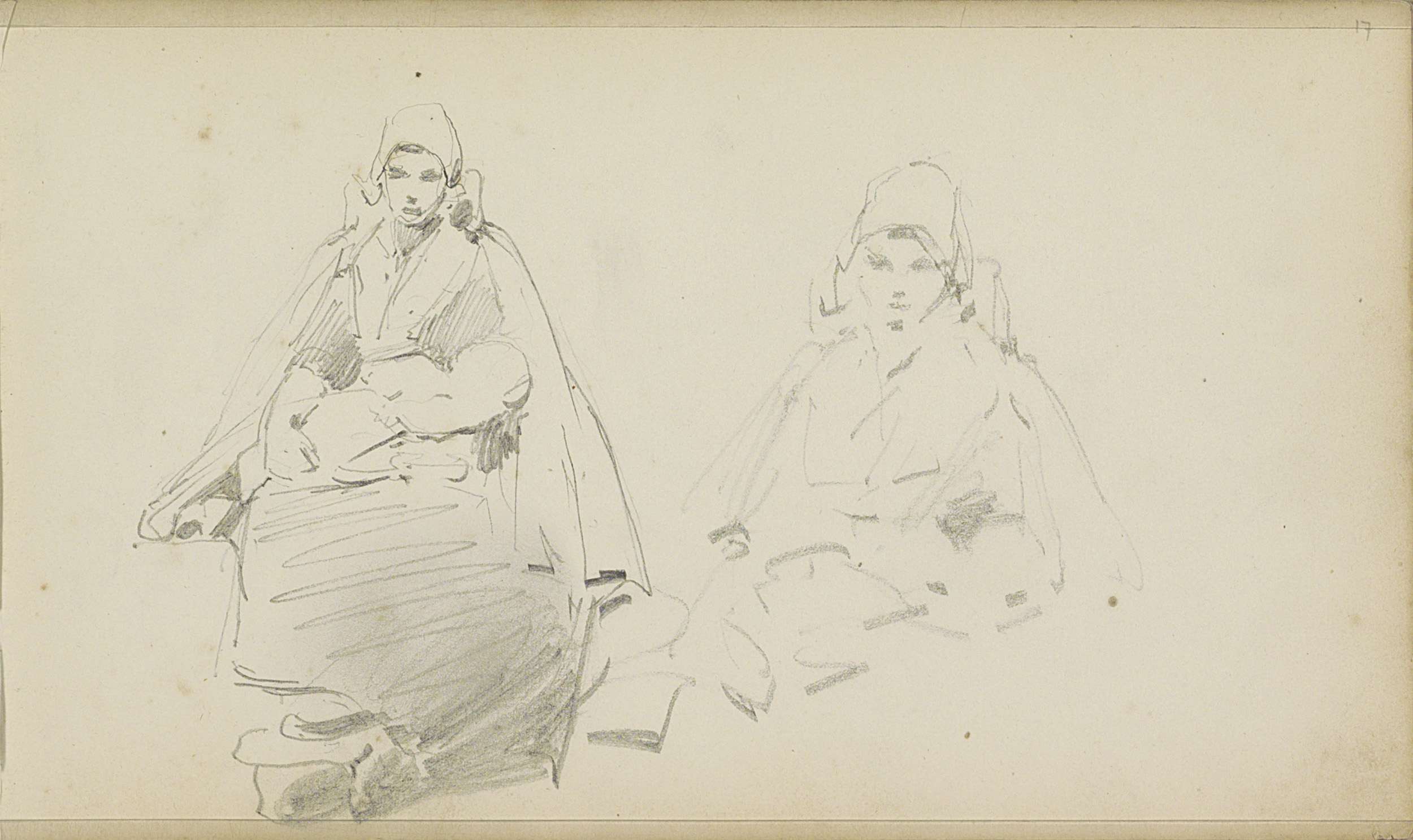 Figuurstudies, waaronder een zittende vrouw op een k...