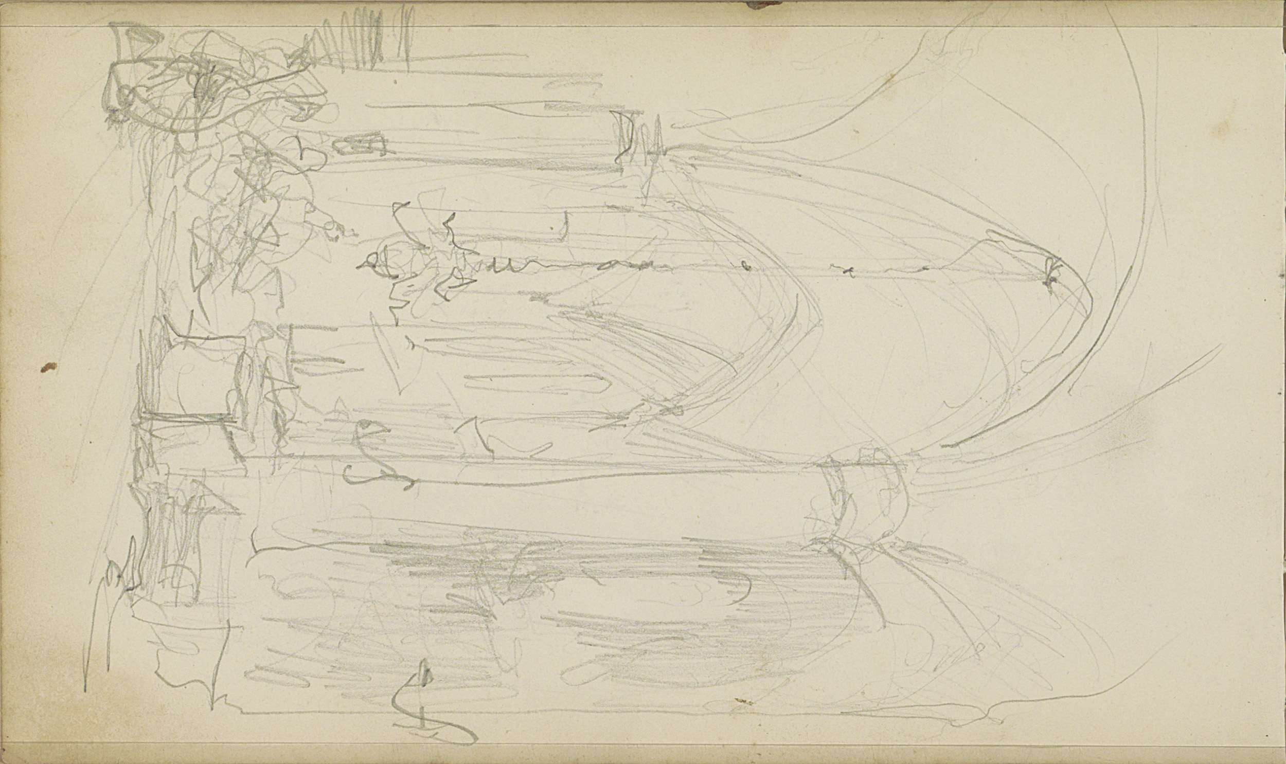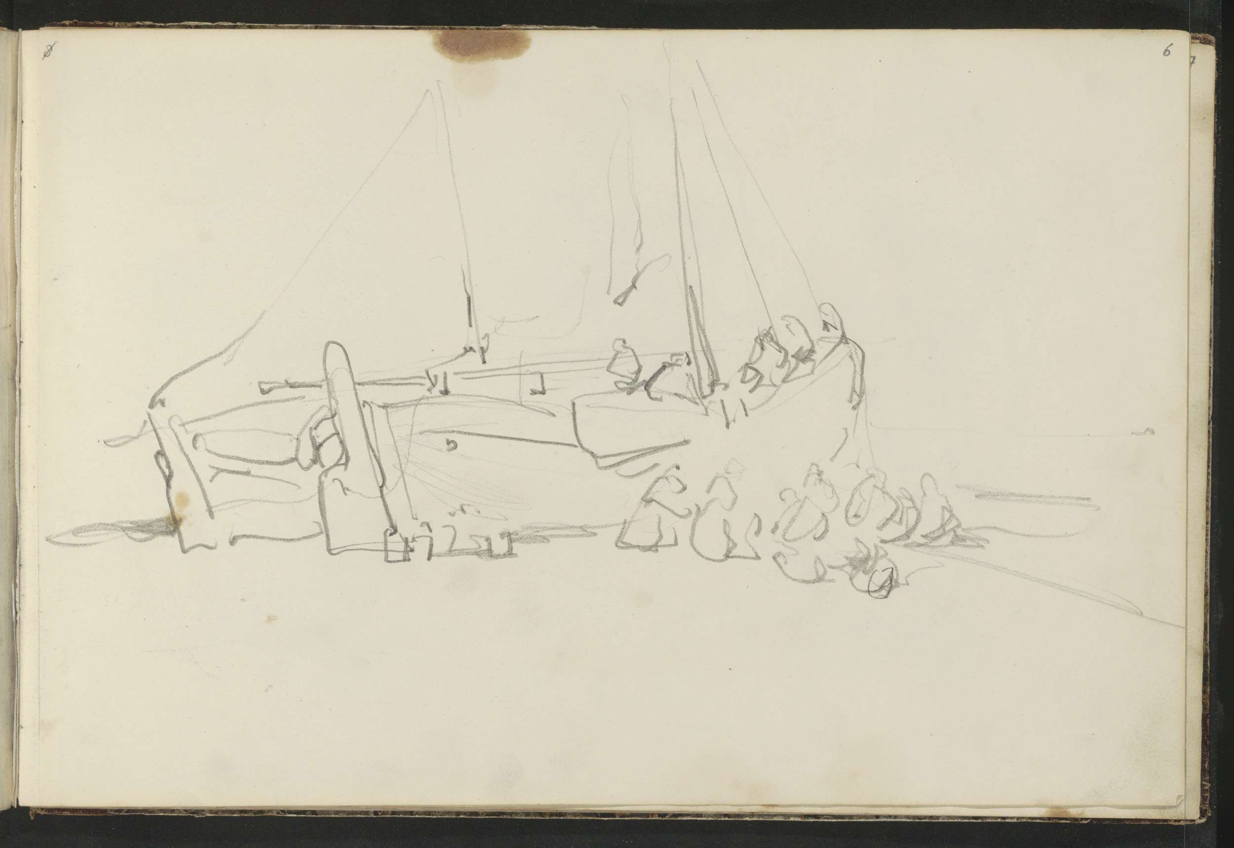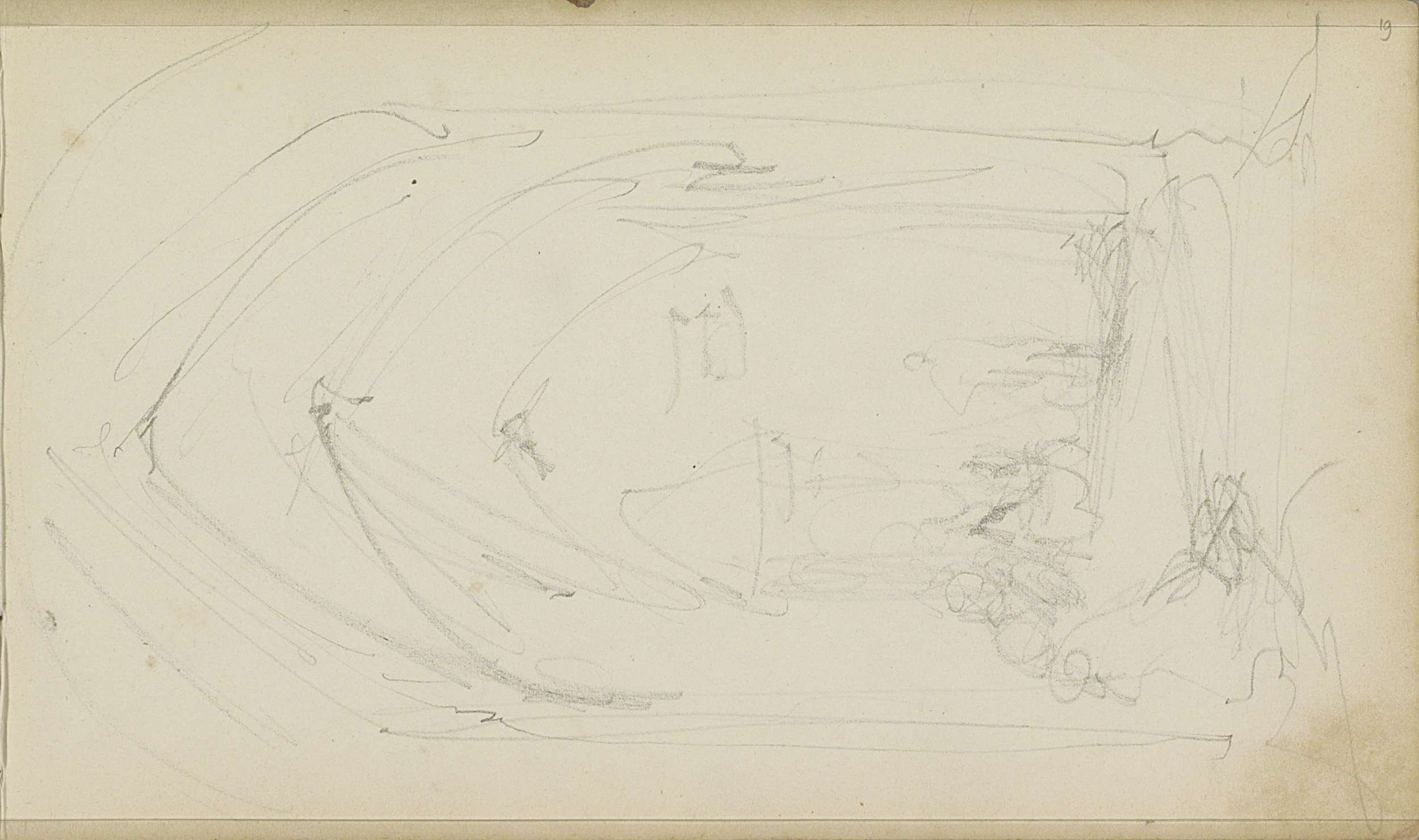 Studieblad met vissers, figuren, een bosgezicht en o...