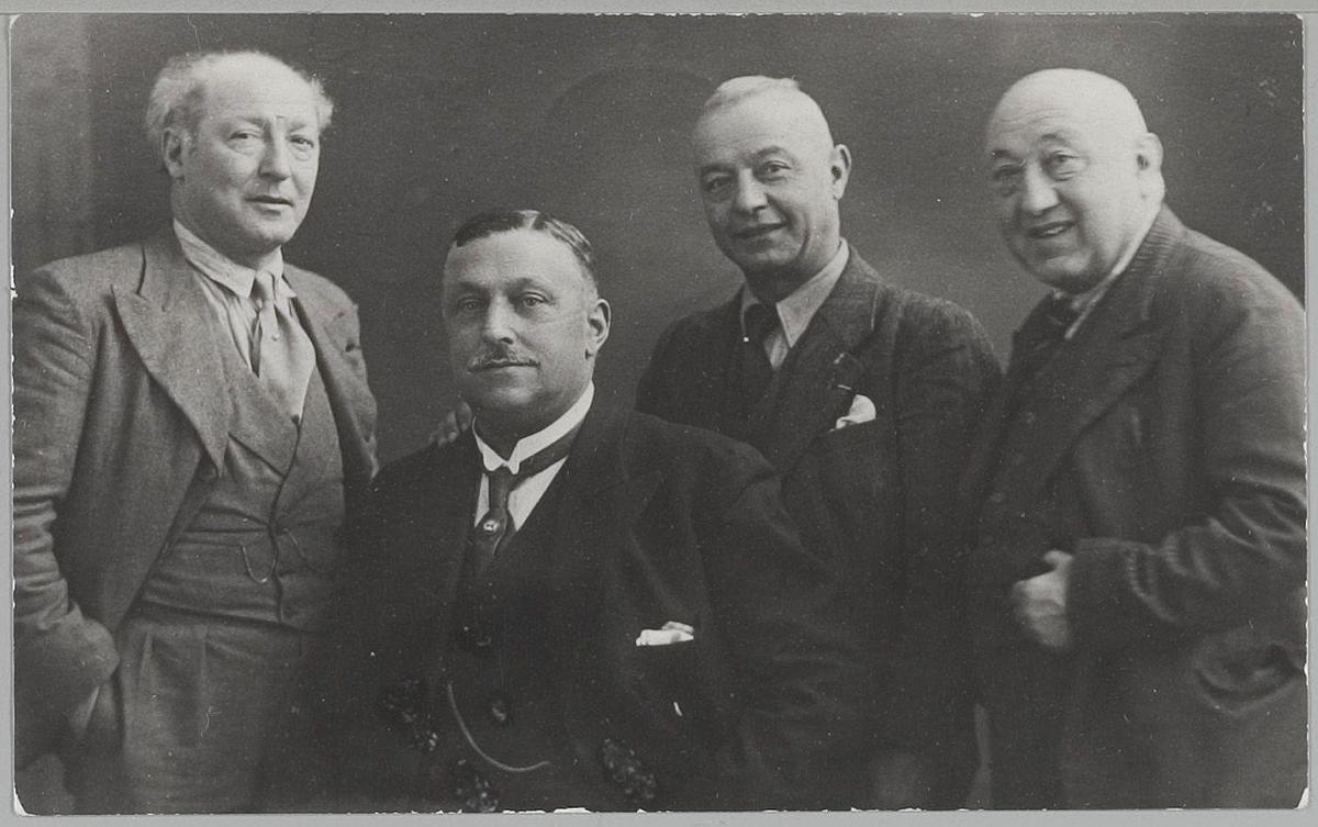 Tweede van links artiestenvriend W.J. Willemse, in g...