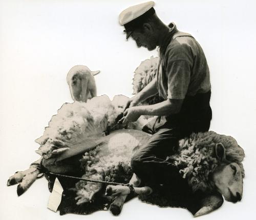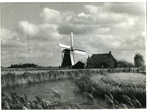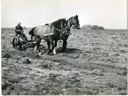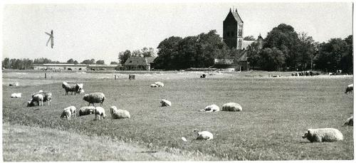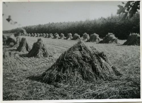 Foto in zwart-wit van een aantal boerderijen gelegen...