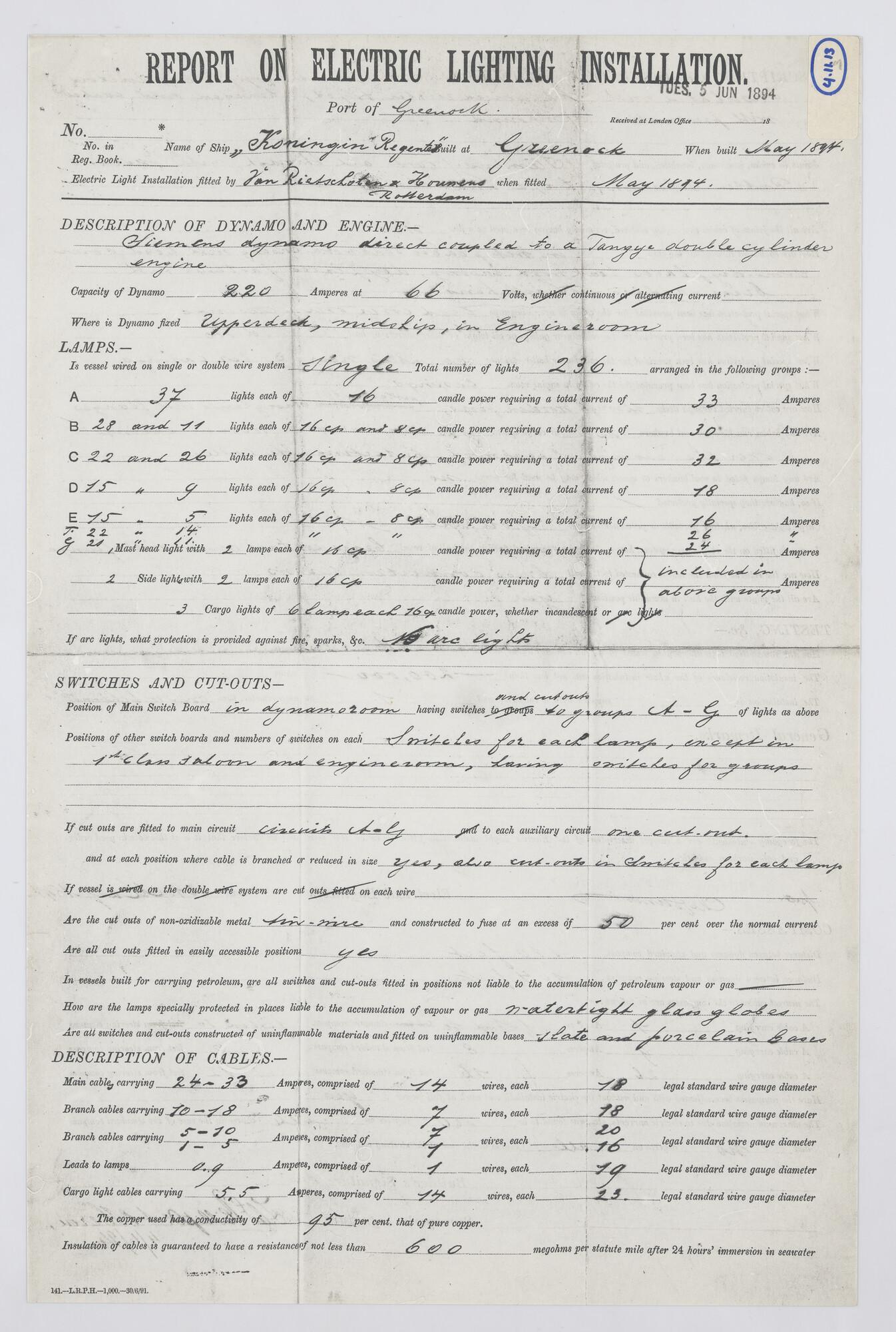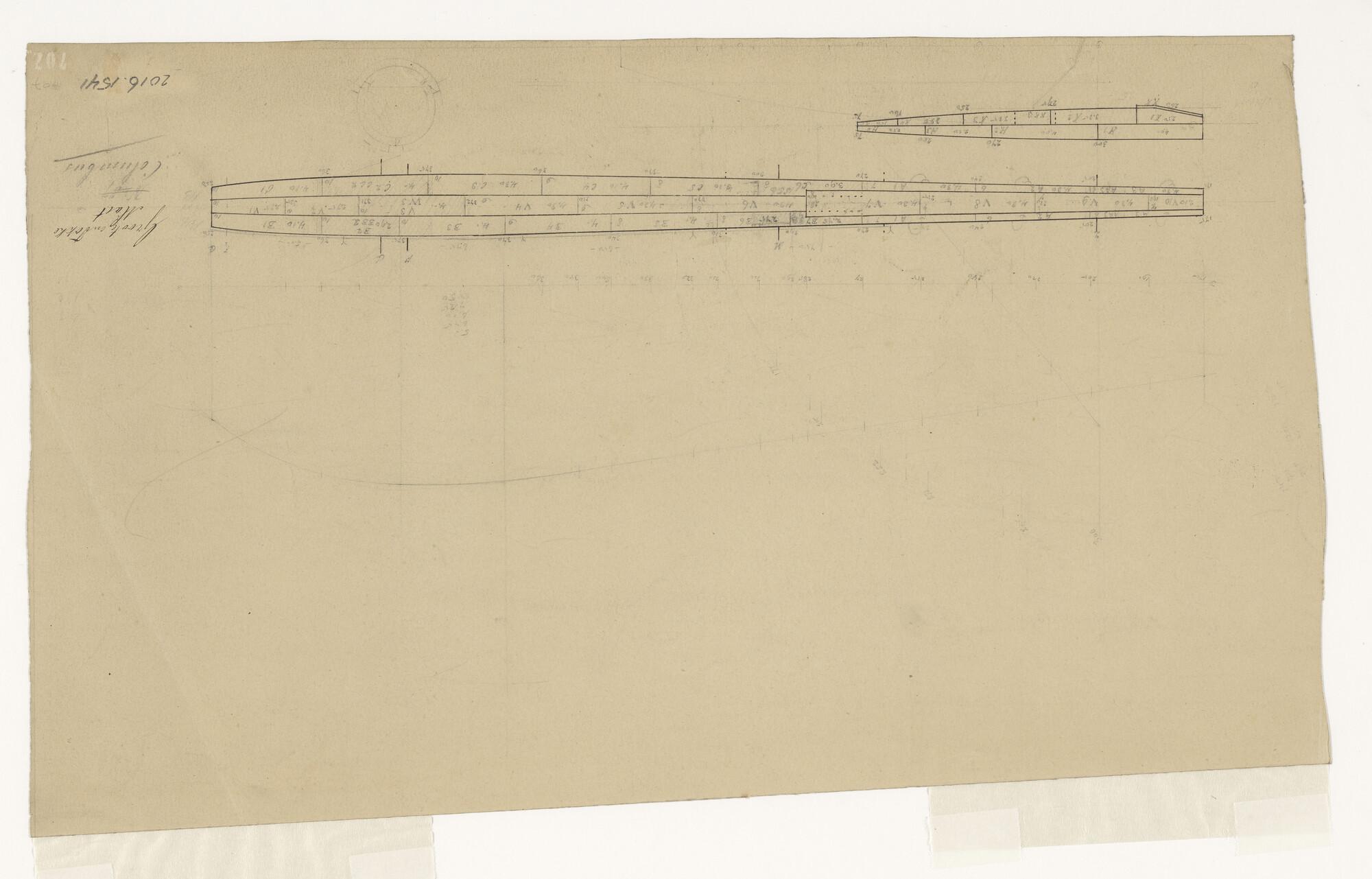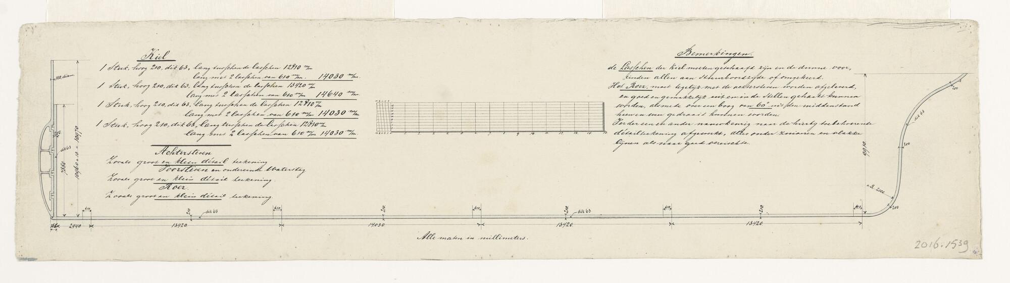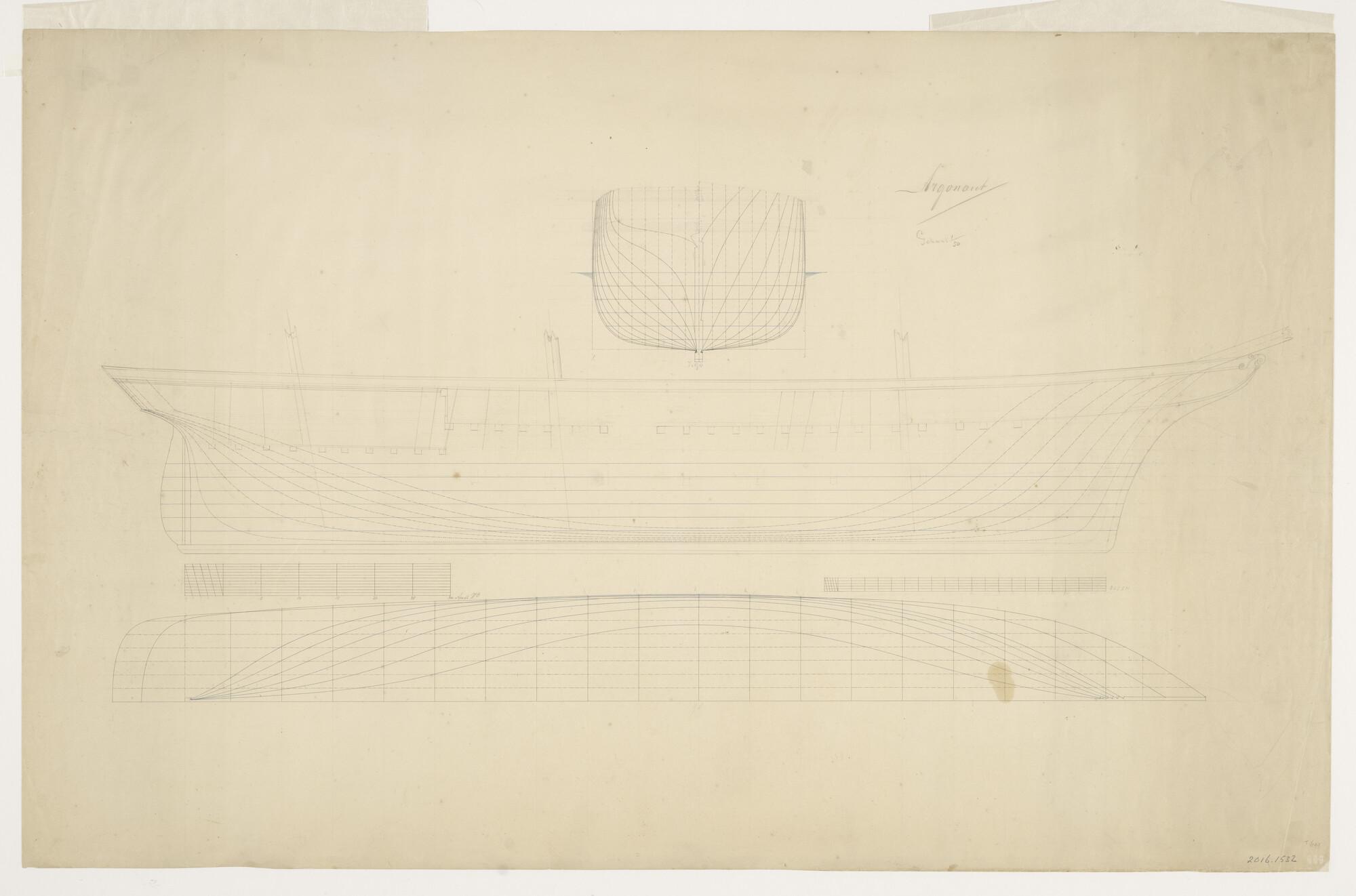 Lijnenplan en spantenraam van de driemastbark Argona...