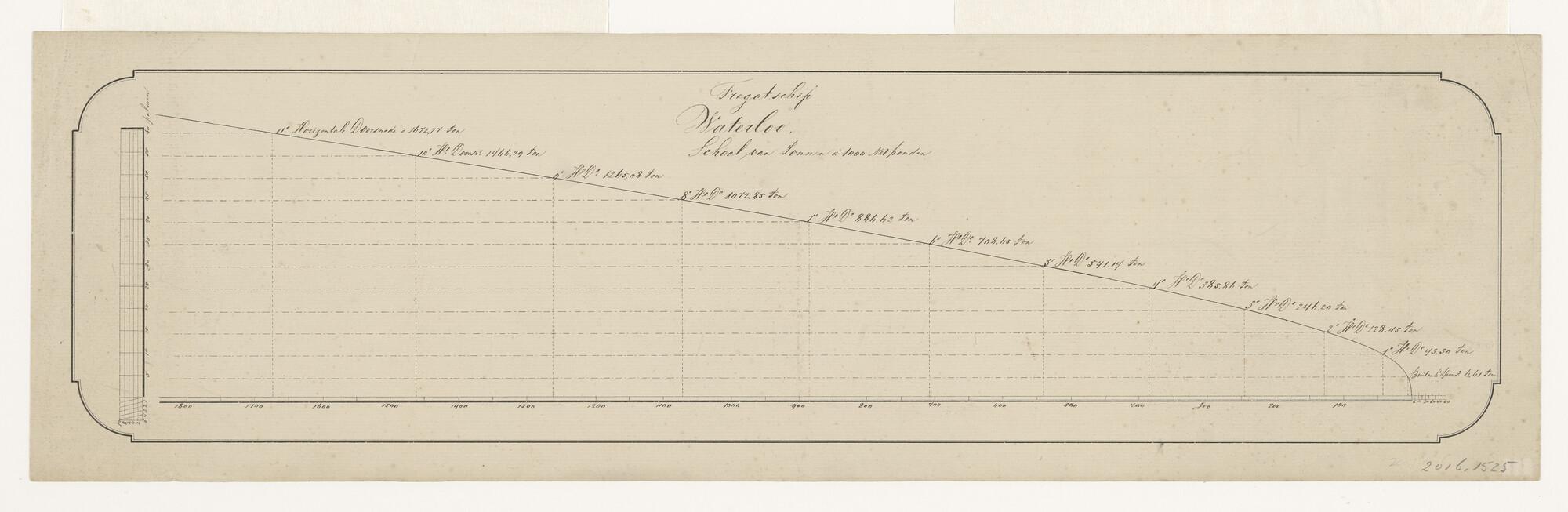 Tuig- en zeilplan van het koopvaardij-fregat Waterlo...