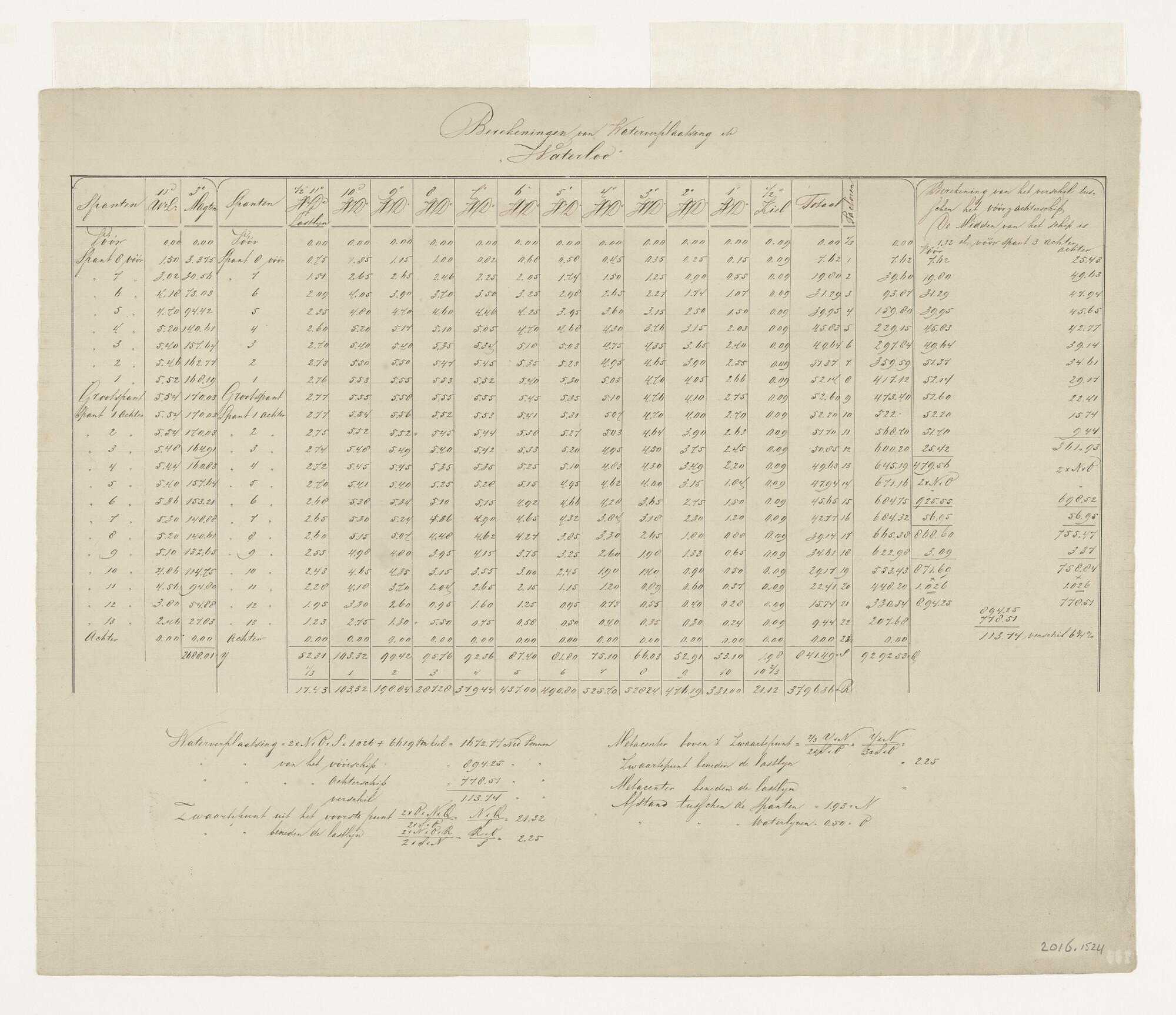Berekeningen van waterverplaatsing van kiel tot last...