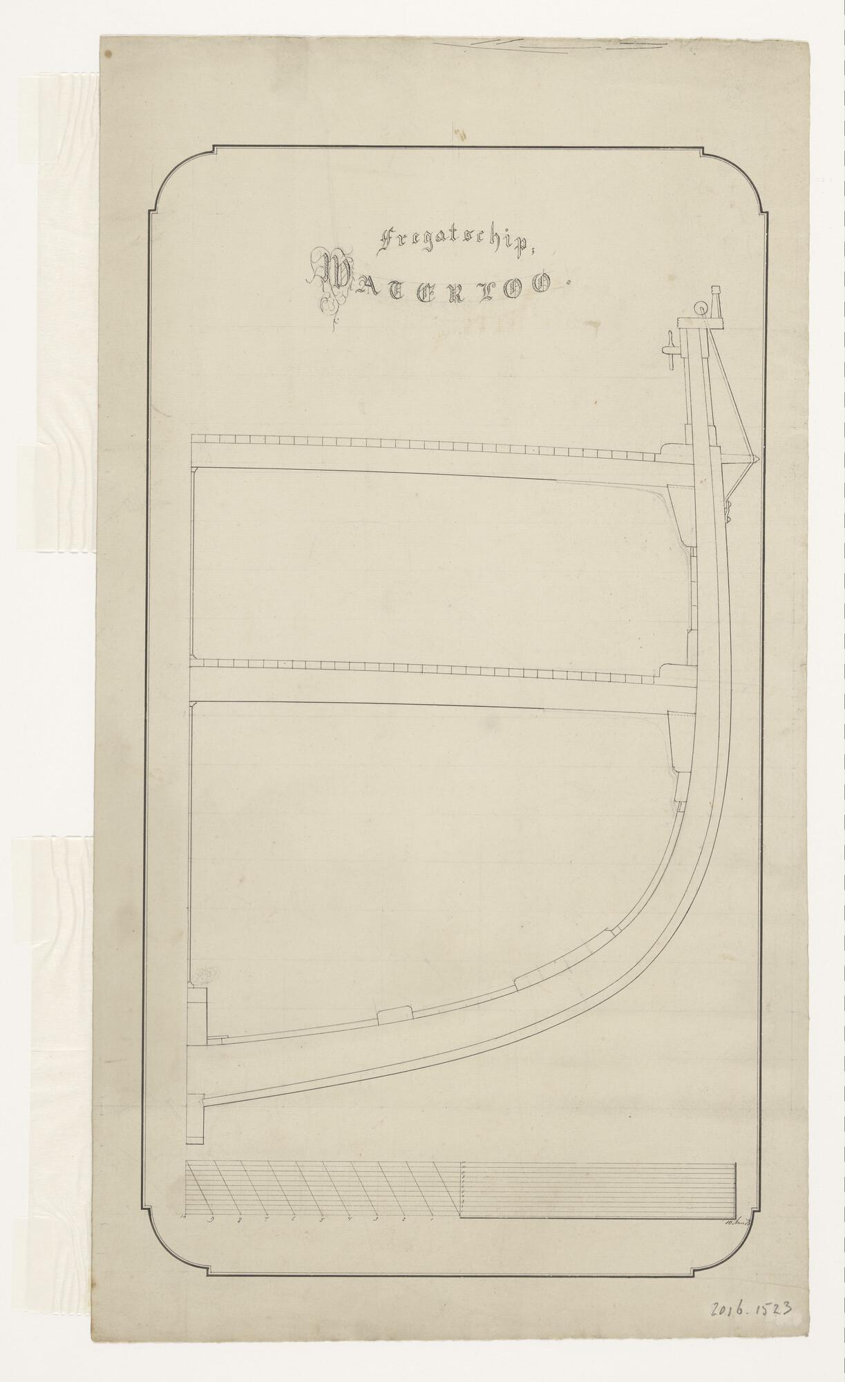 Halve dwarsdoorsnede van het koopvaardij-fregat Wate...