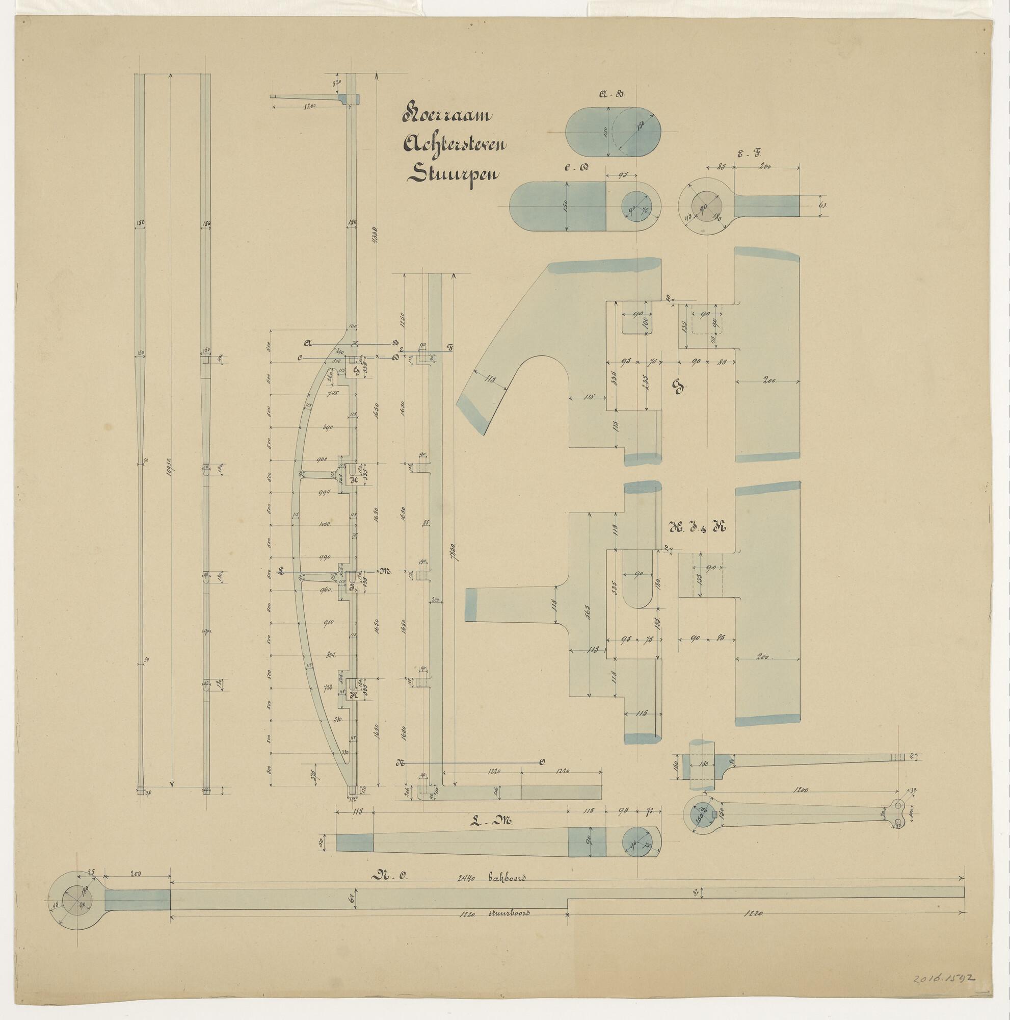 Doorsneden over roerraam, achtersteven en stuurpen v...