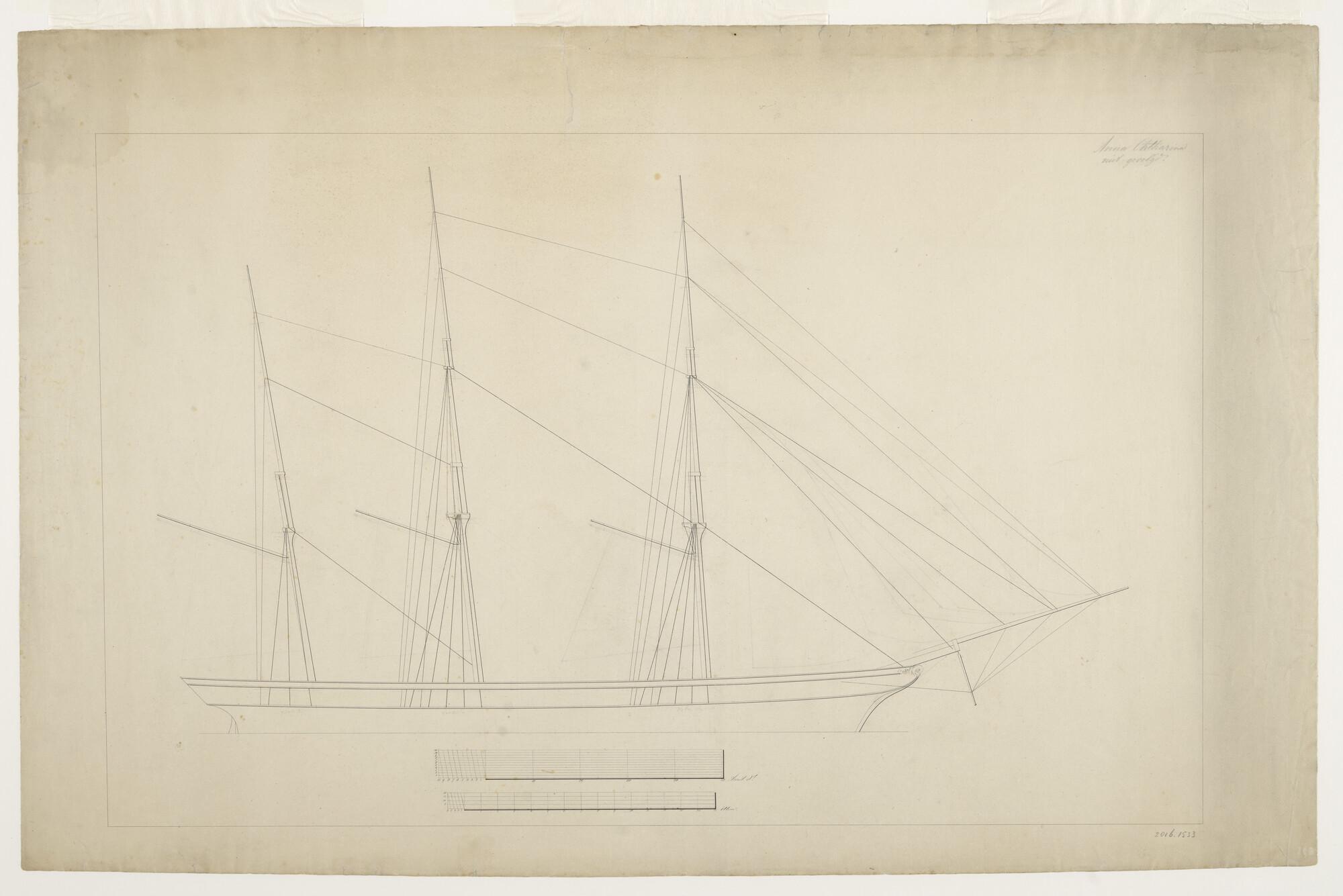 Tuigplan van de driemastbark met lijzeilspieren Anna...