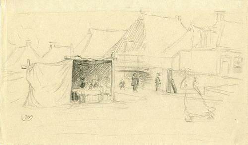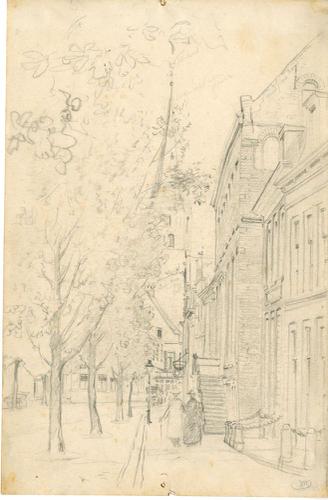 Tekening met potlood van een stadsgezicht in Franeke...