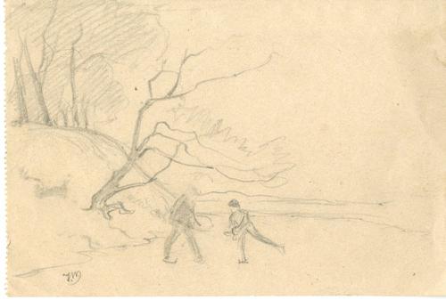 Tekening met potlood van een winters tafereel door I...