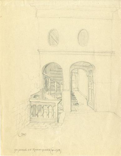 Tekening met potlood van de deur van het Coopmanshûs...