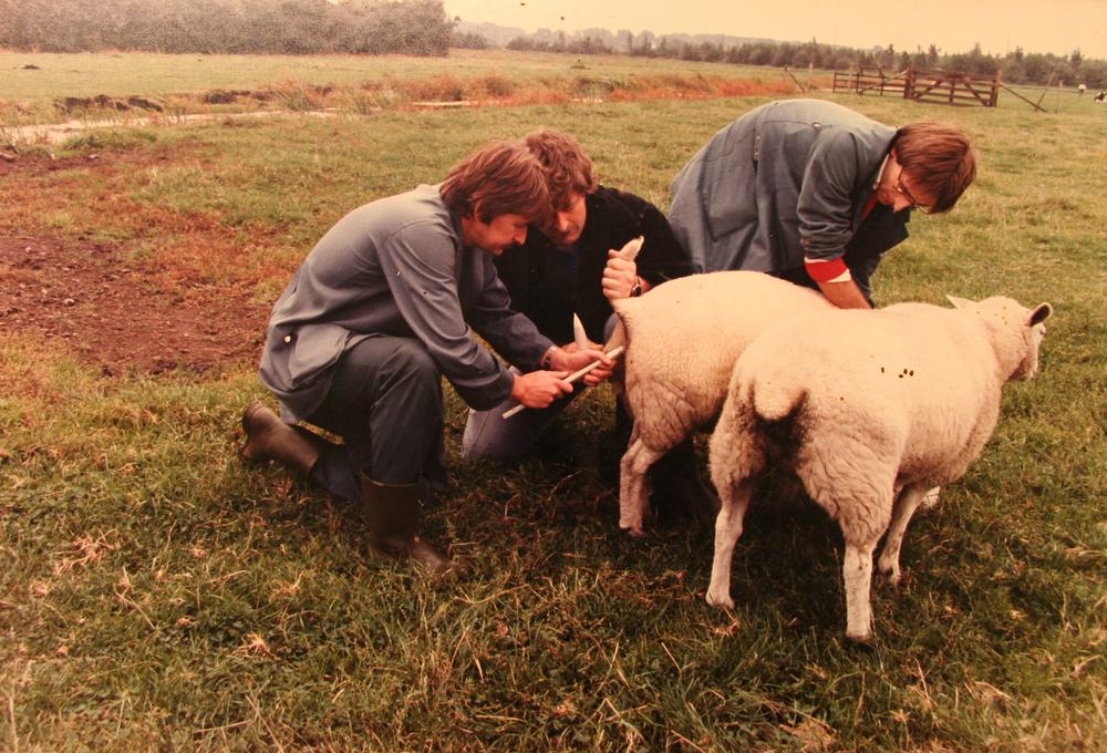 Foto van het 'sponzen' van schapen