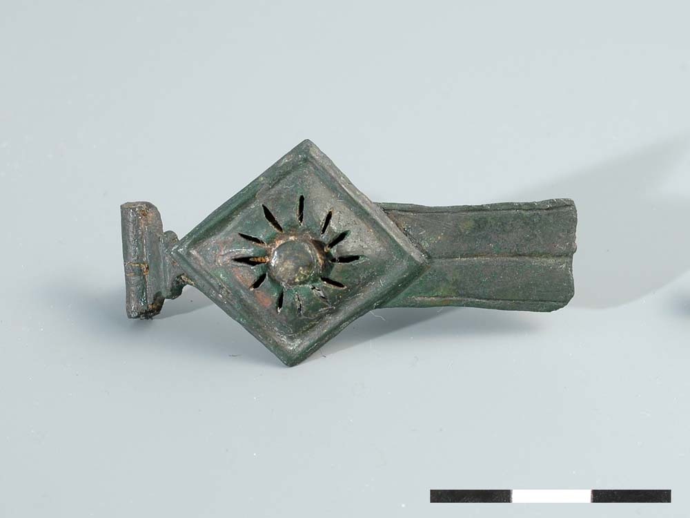 Scharnier-rozetfibula van brons uit de Romeinse tijd