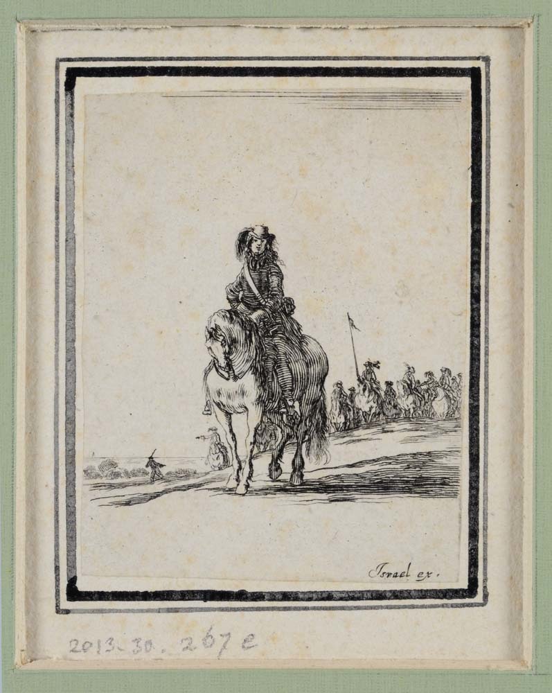 Ruiter te paard die voor de troepen uit gaat