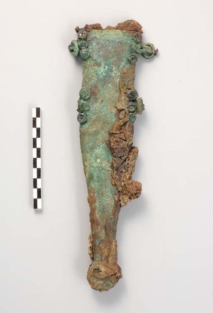 Dolkresten van ijzer met schede van brons uit de vro...