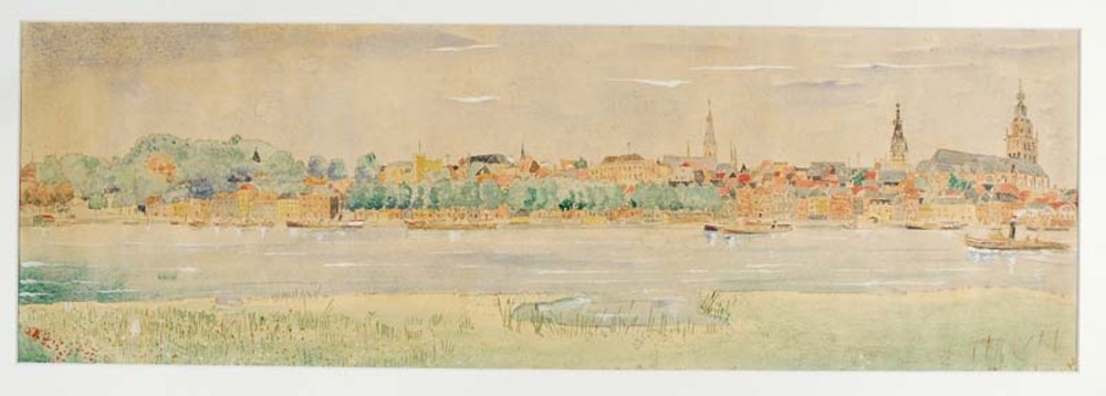 Gezicht op Nijmegen vanaf Lentse Waaloever
