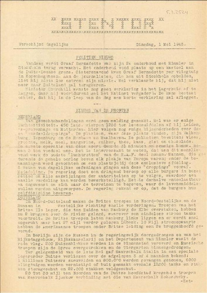 Stentor, Dinsdag, 1 Mei 1945.