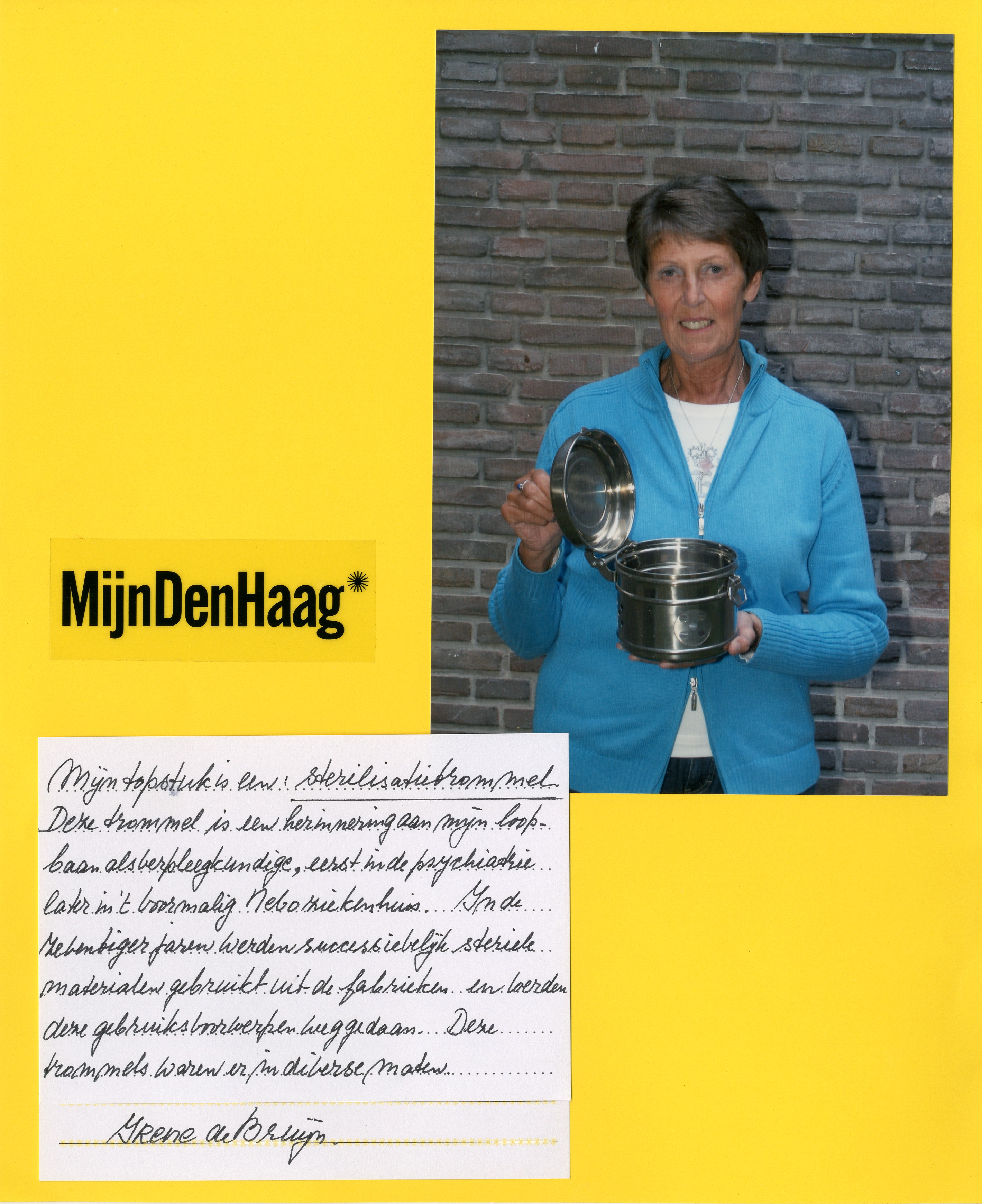 Het topstuk (sterilisatietrommel) van Irene de Bruijn
