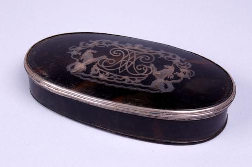 Schildpad tabaksdoos met ingelegd spiegelmonogram