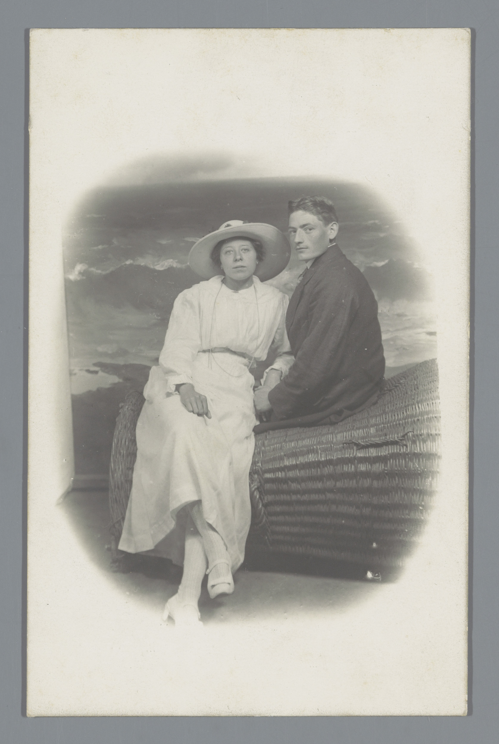 Studioportret van een onbekende man en vrouw op een ...