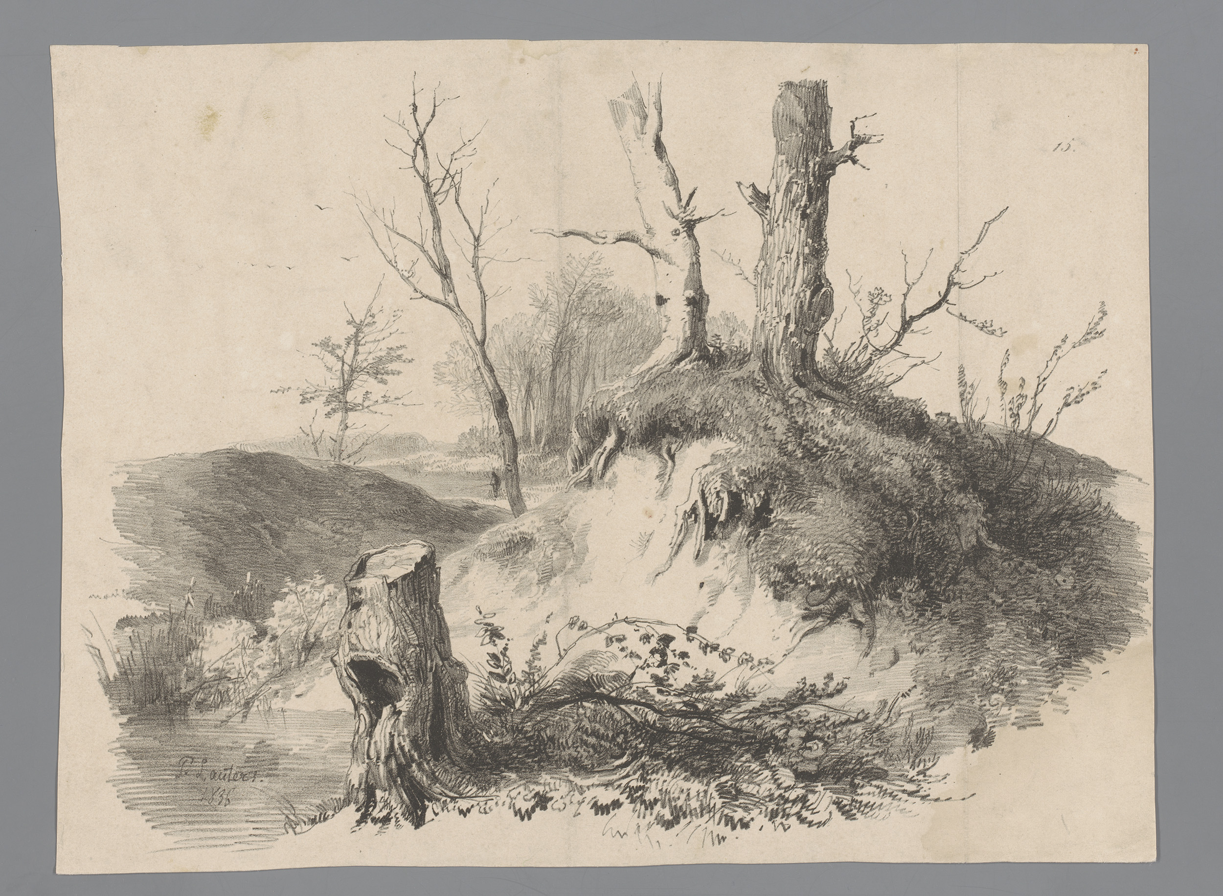 Landschap met boomstronken