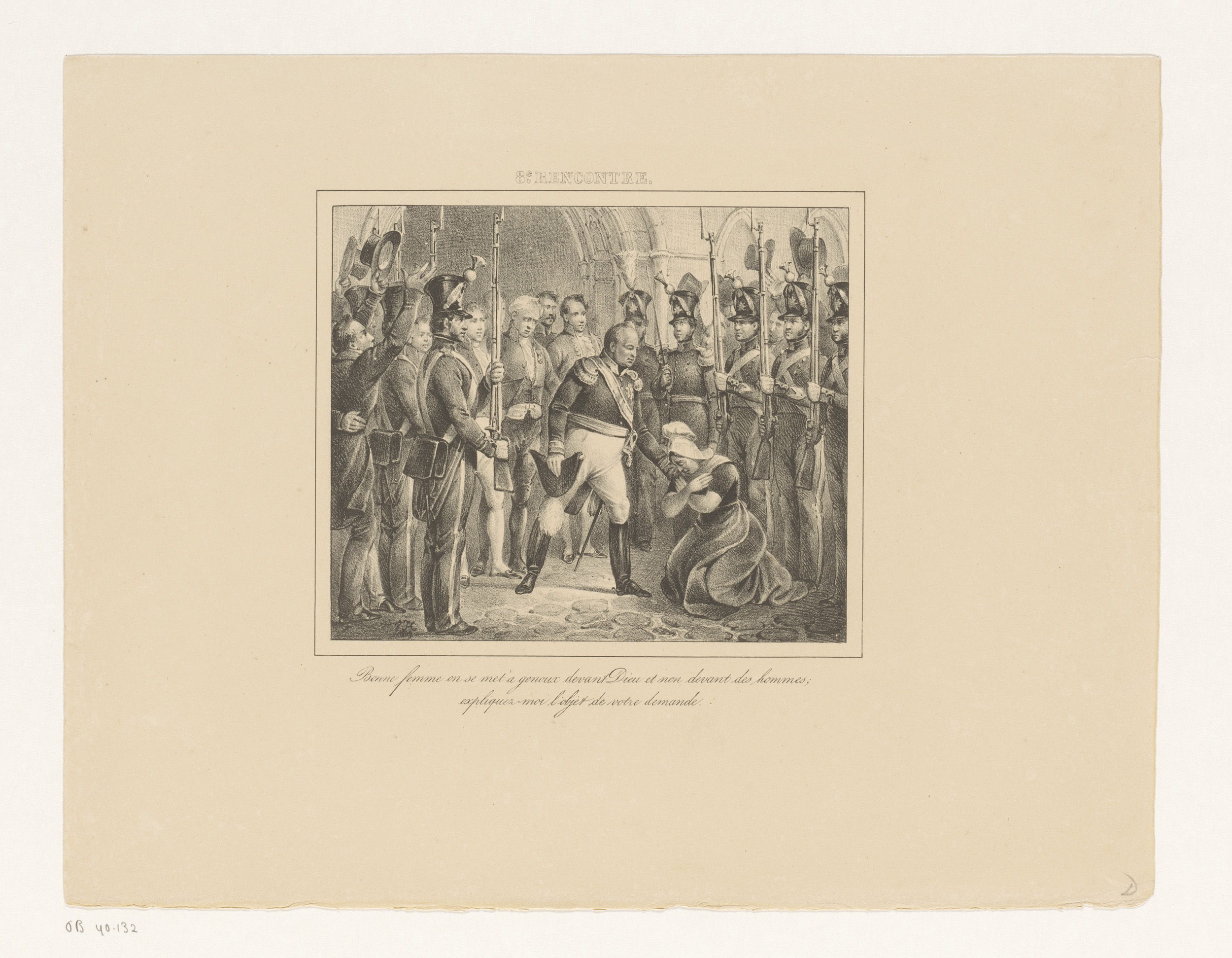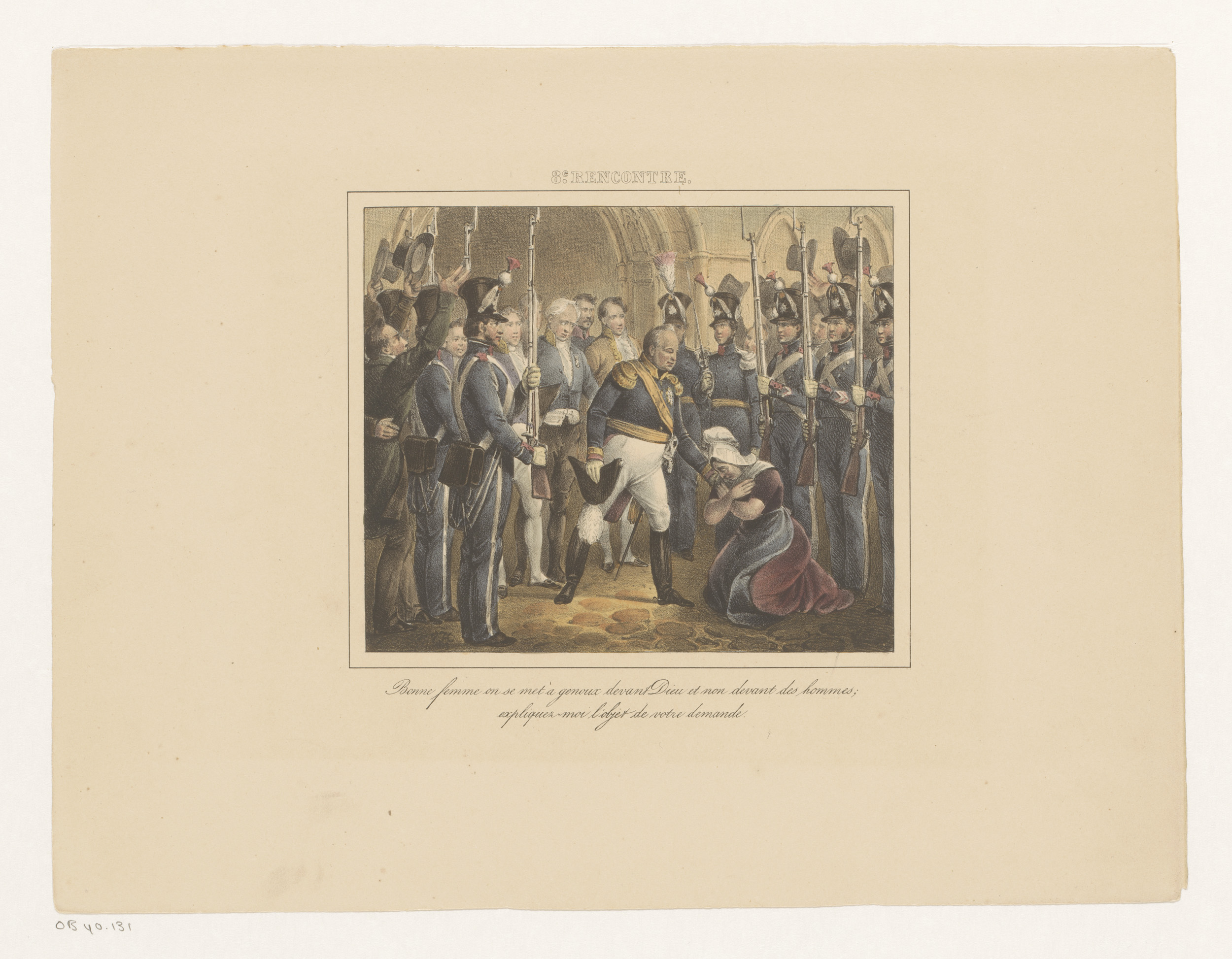 Koning Willem I met een knielende vrouw