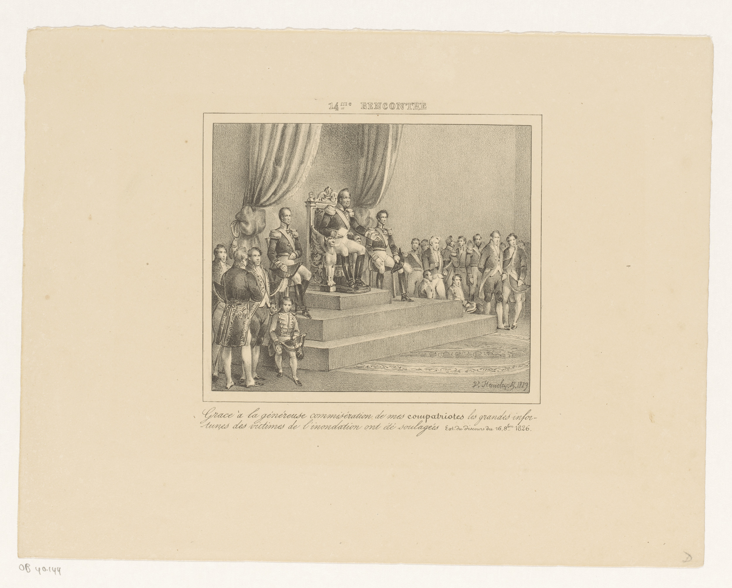 Koning Willem I met een knielende vrouw, 1829