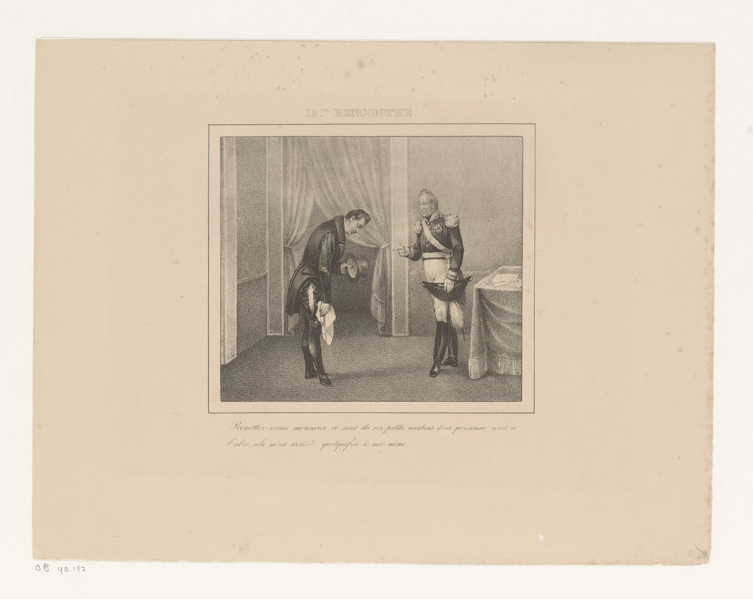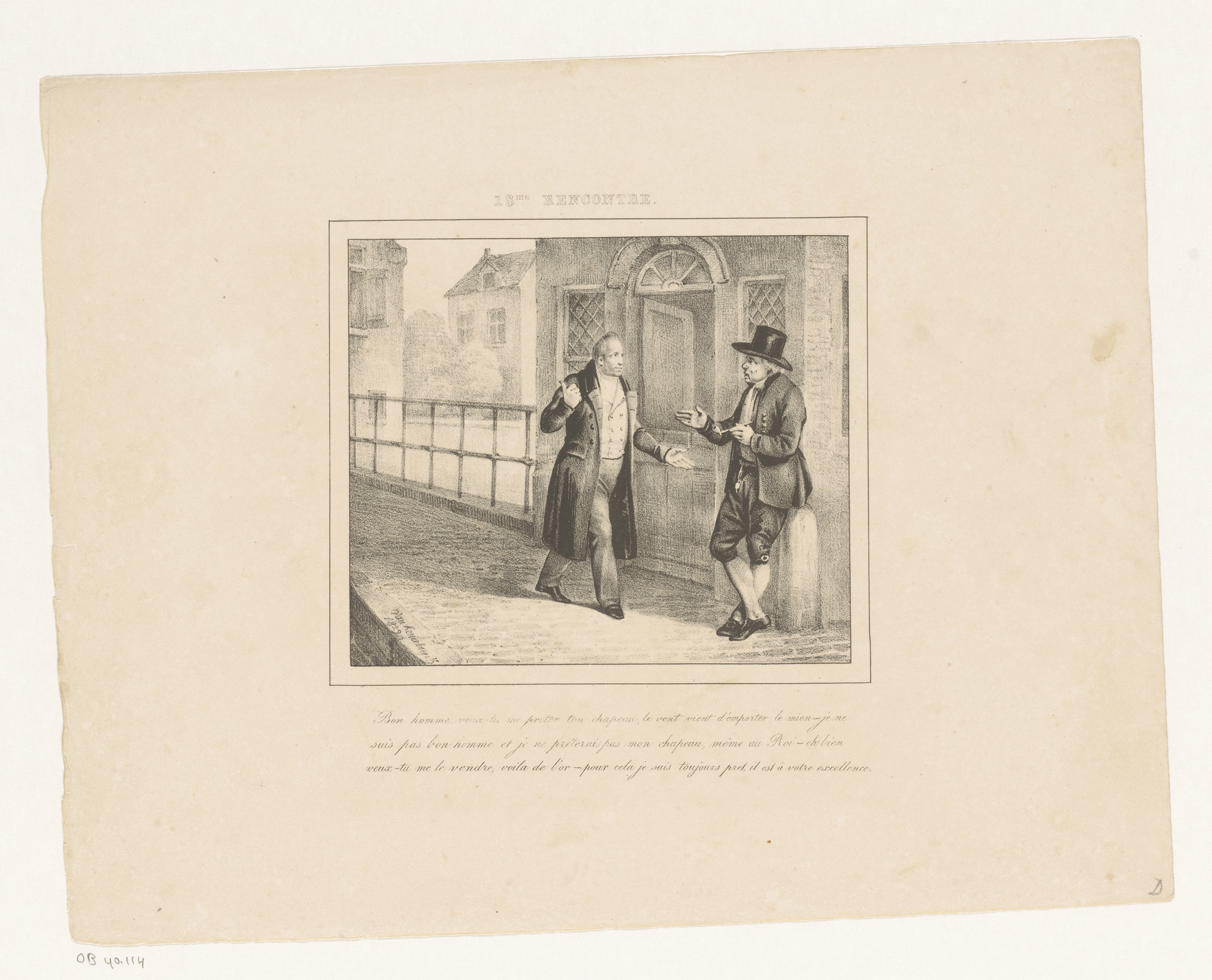 Koning Willem I vraagt een hoed te leen, 1829
