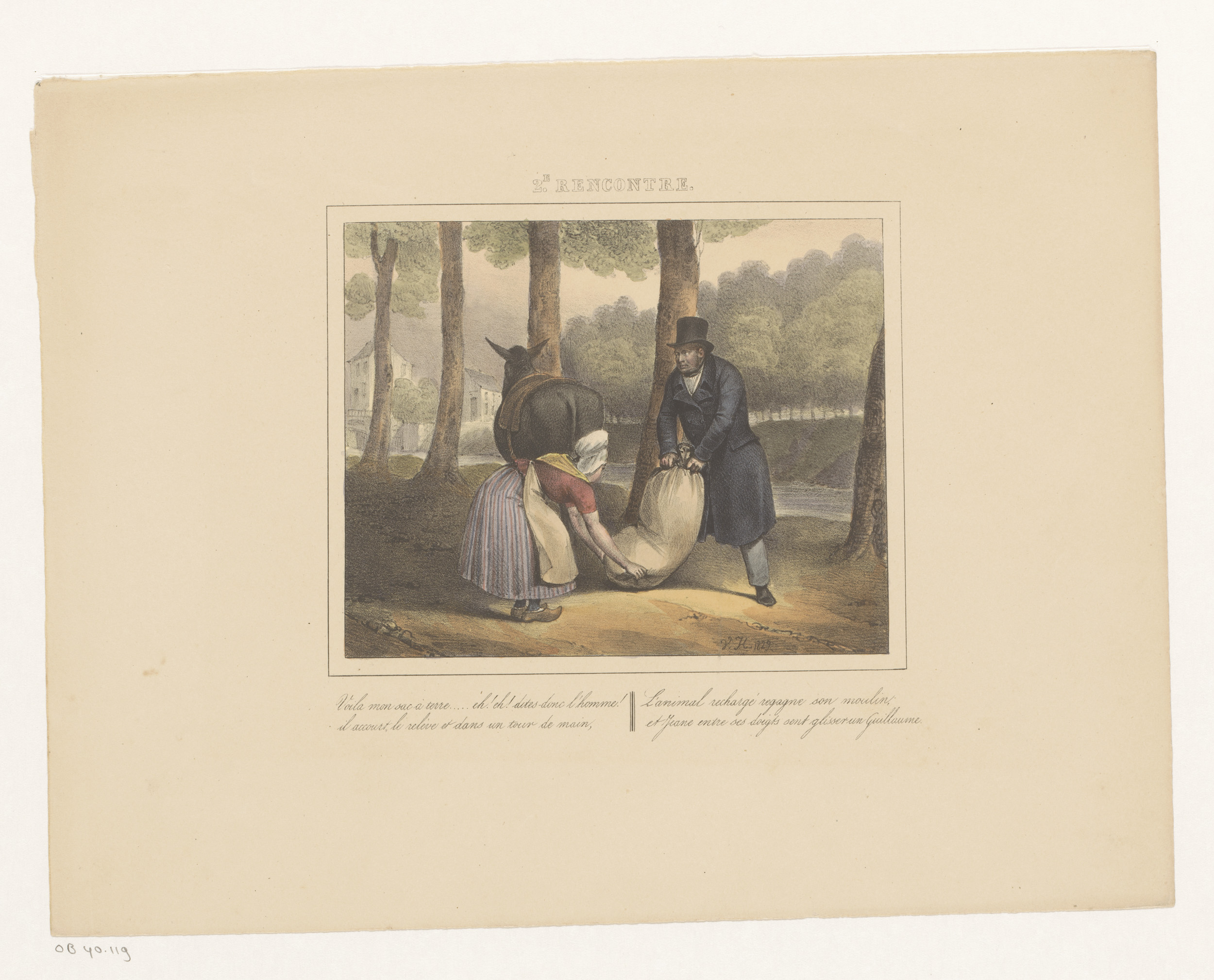 Koning Willem I helpt een vrouw, 1829