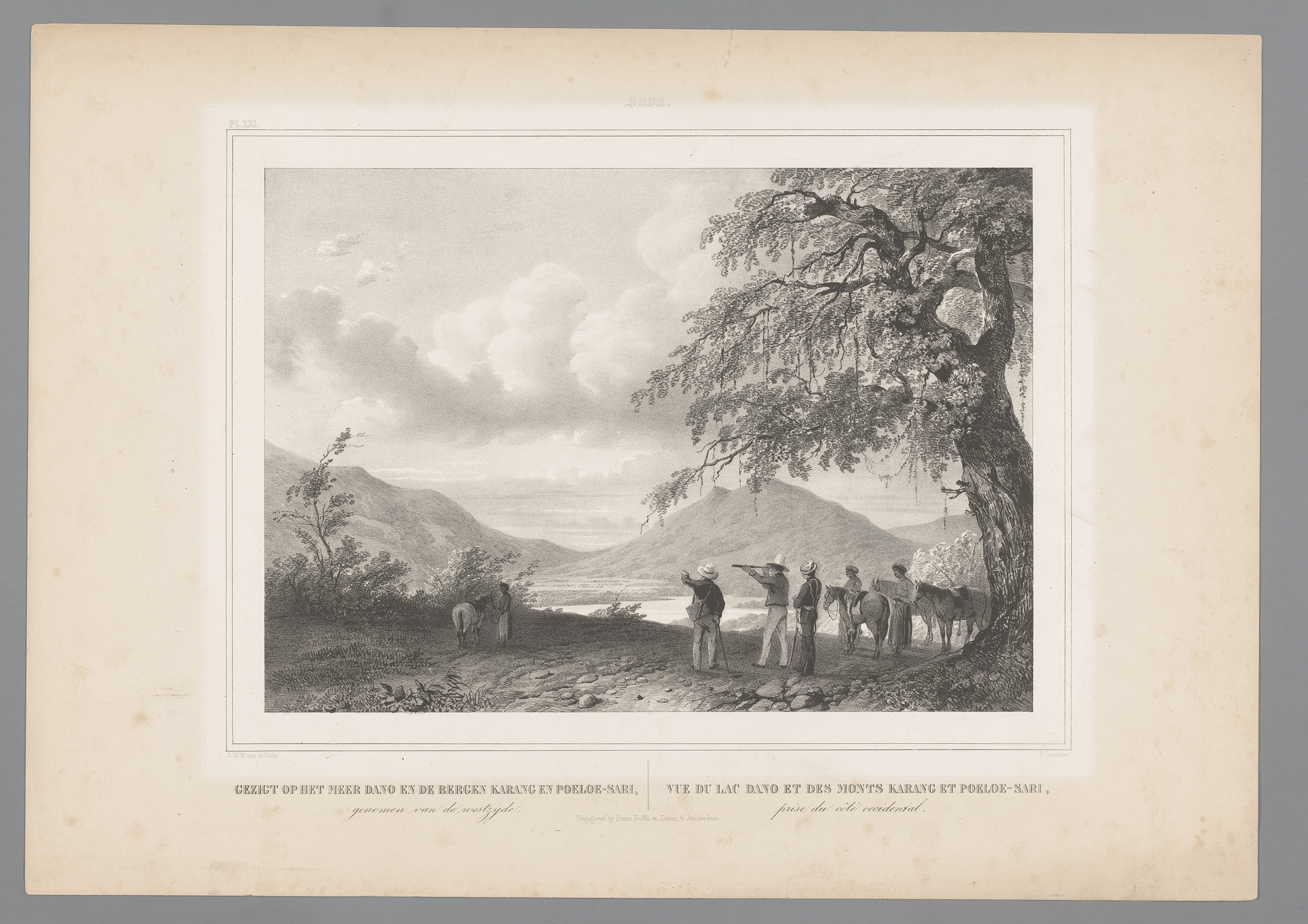 Landschap met figuren bij een meer en de vulkanen Gu...