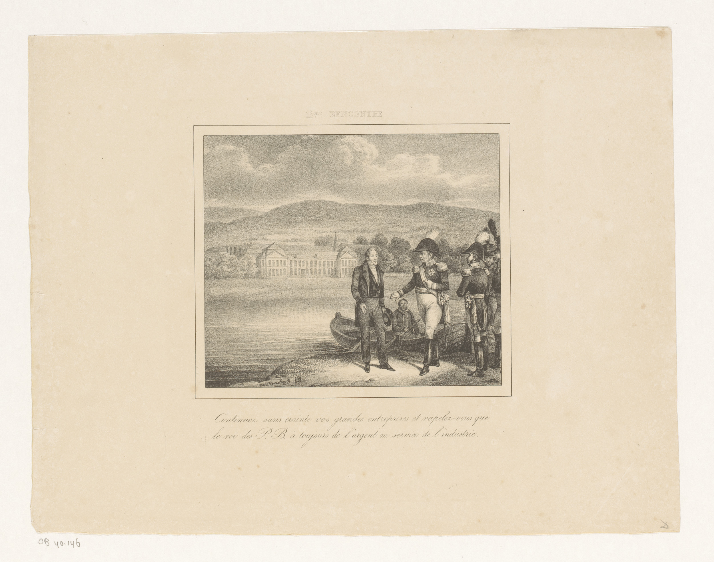 Koning Willem I wijst twee mannen de weg, 1829