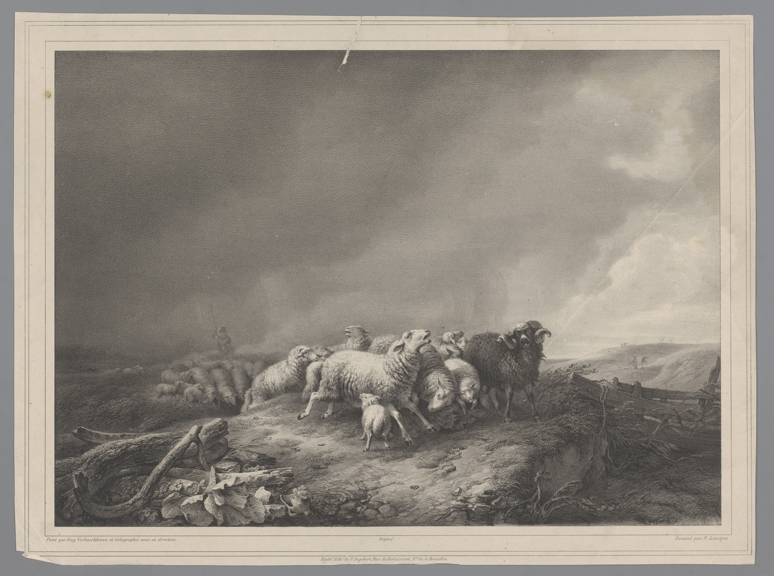 Herder met kudde in een storm