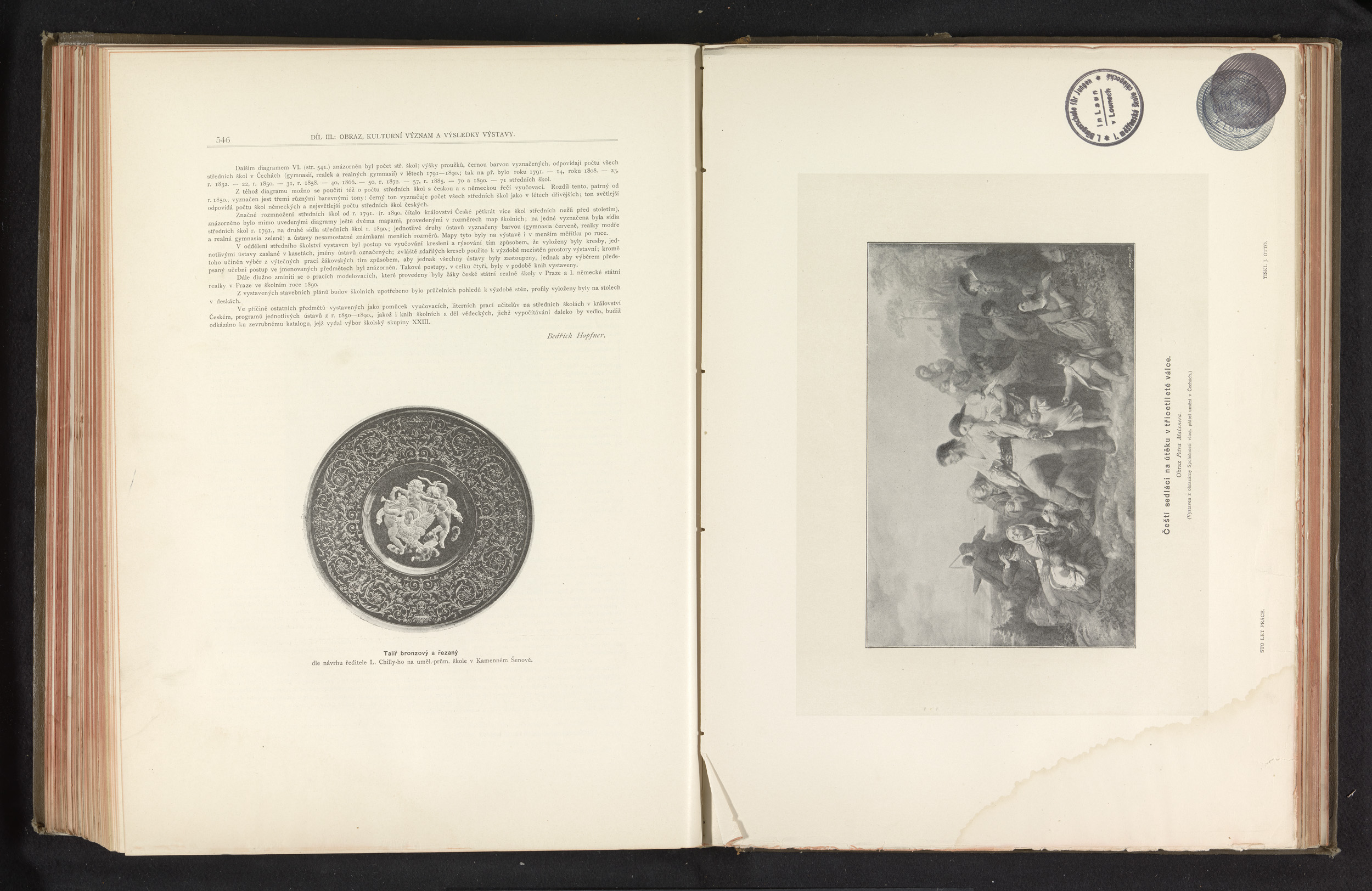 Metalen plakkaat, reliëf van Hygieia en een omlijsti...