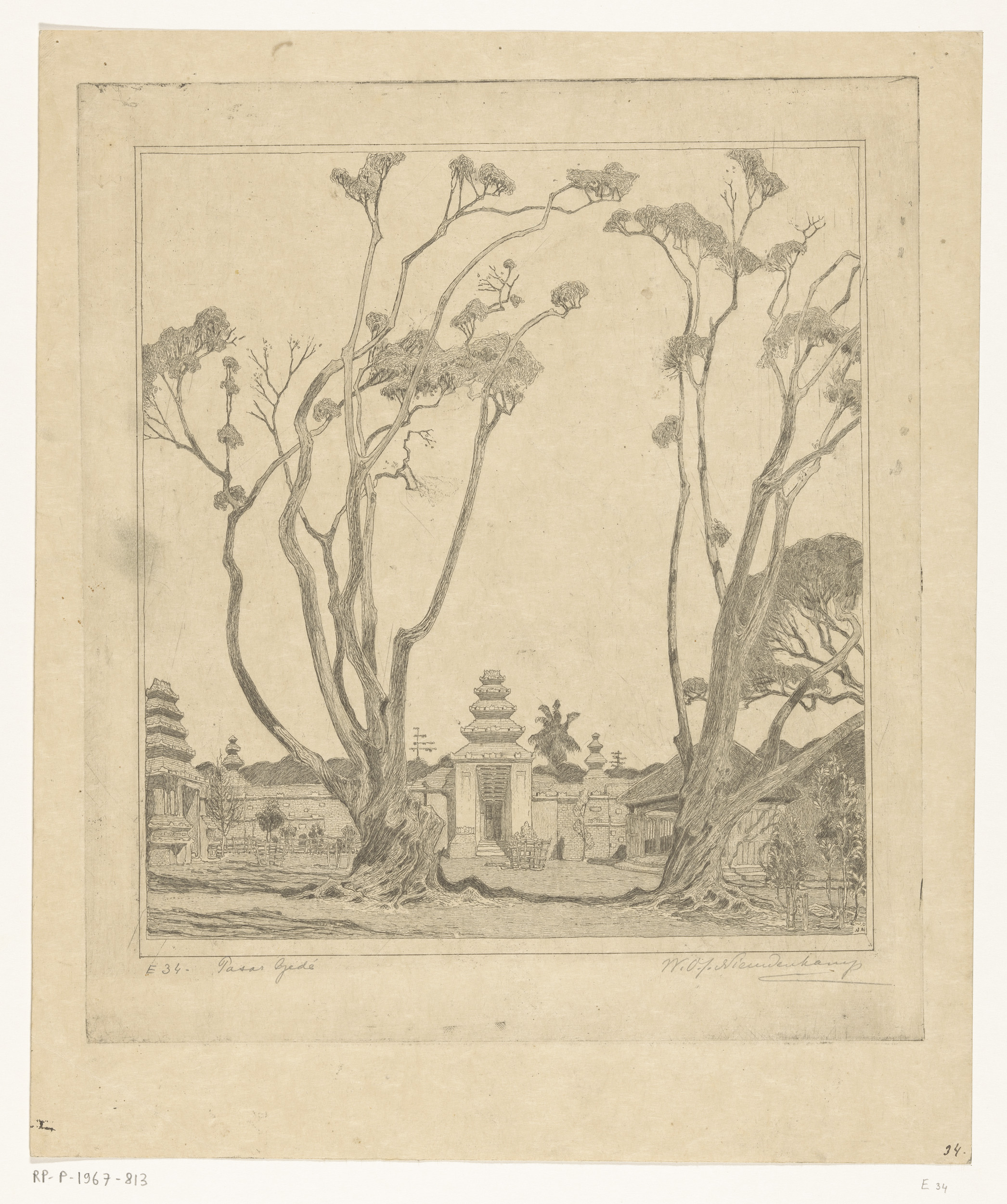 Binnenplaats met twee waringinbomen bij Jogyakarta o...
