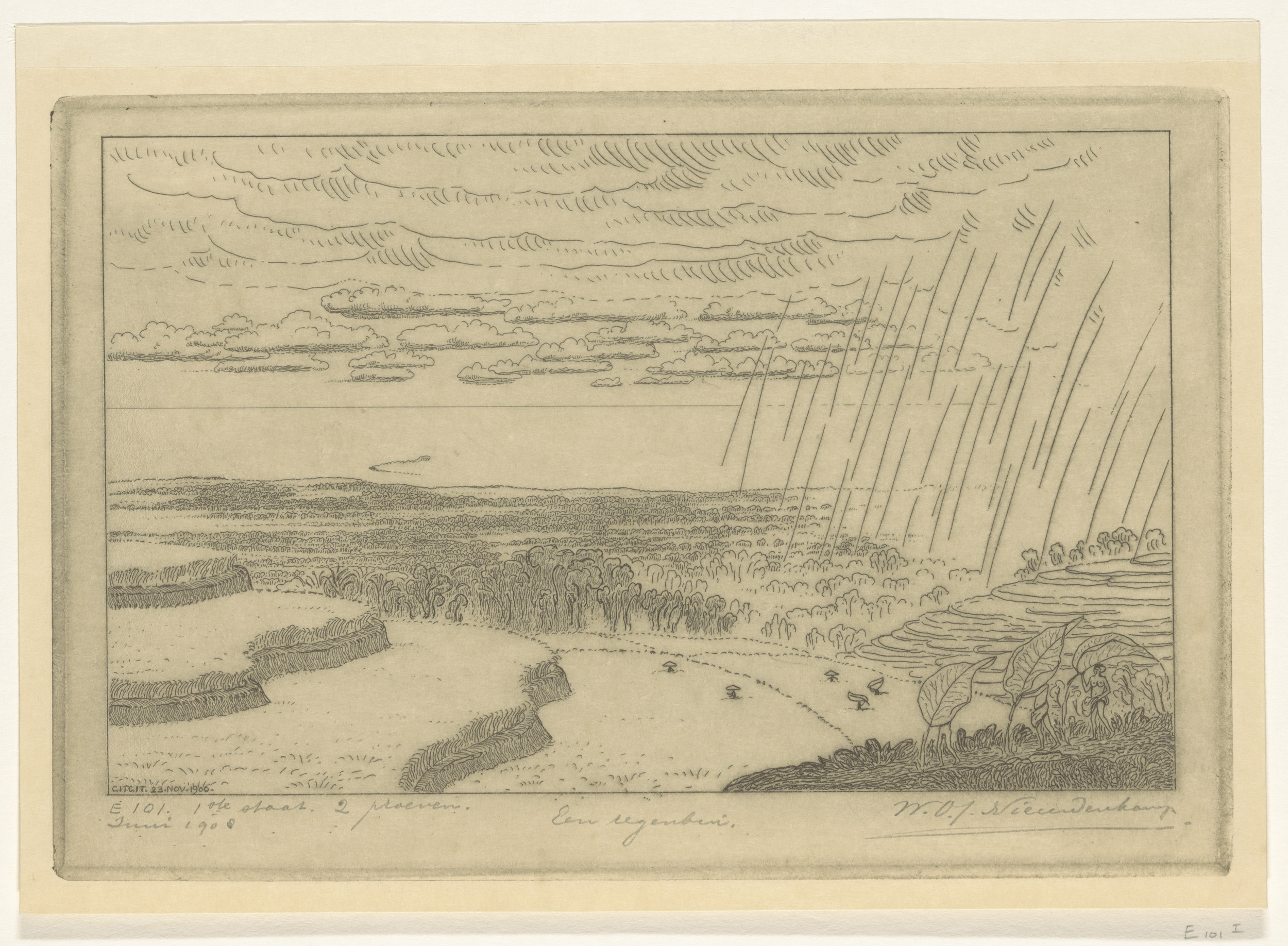 Regenbui boven de rijstvelden bij Gitgit op Bali