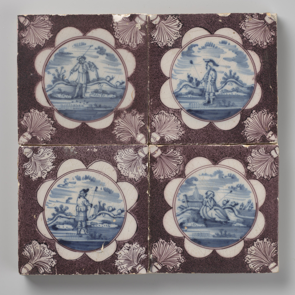 tegelveld, bestaande uit vier tegels van aardewerk m...