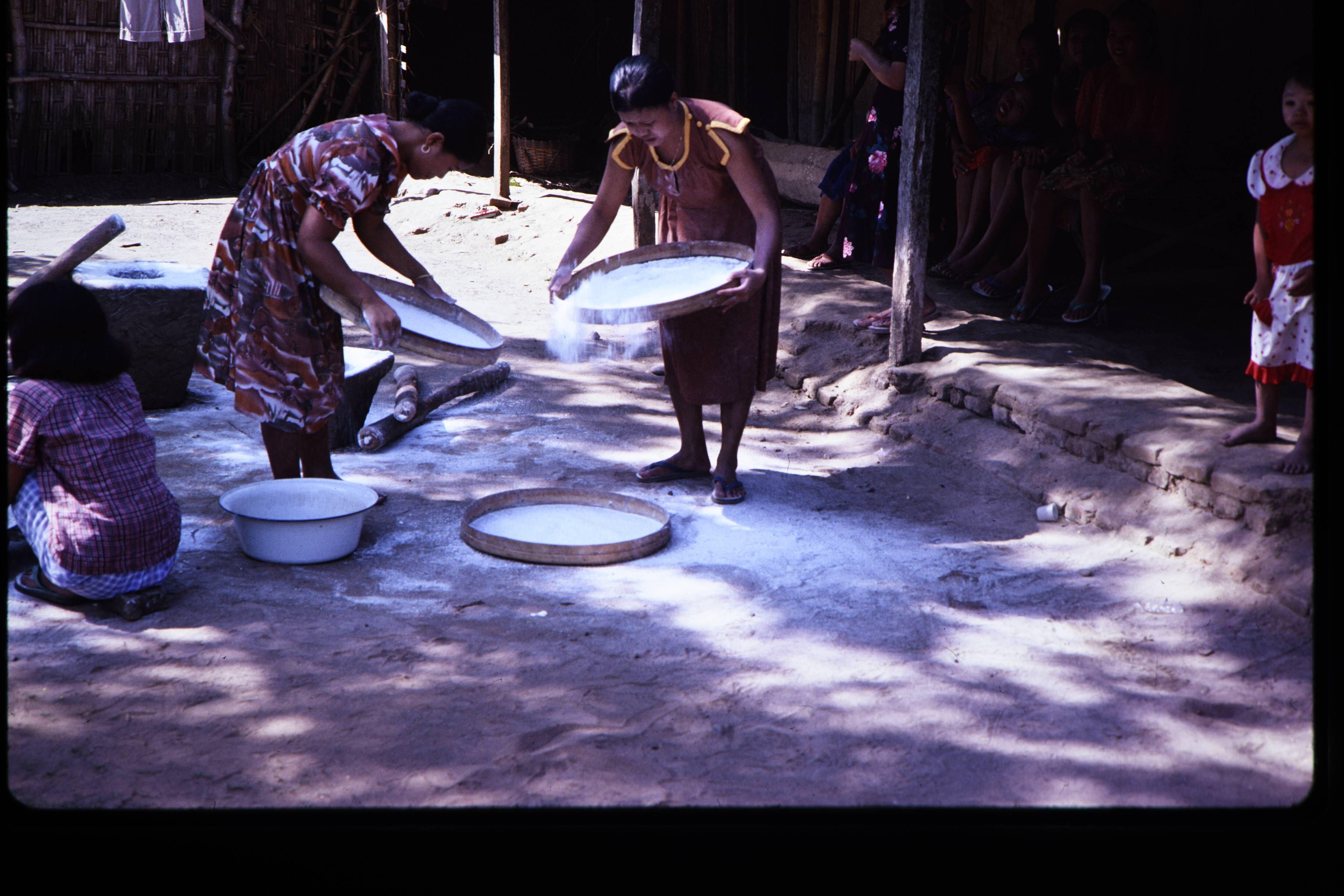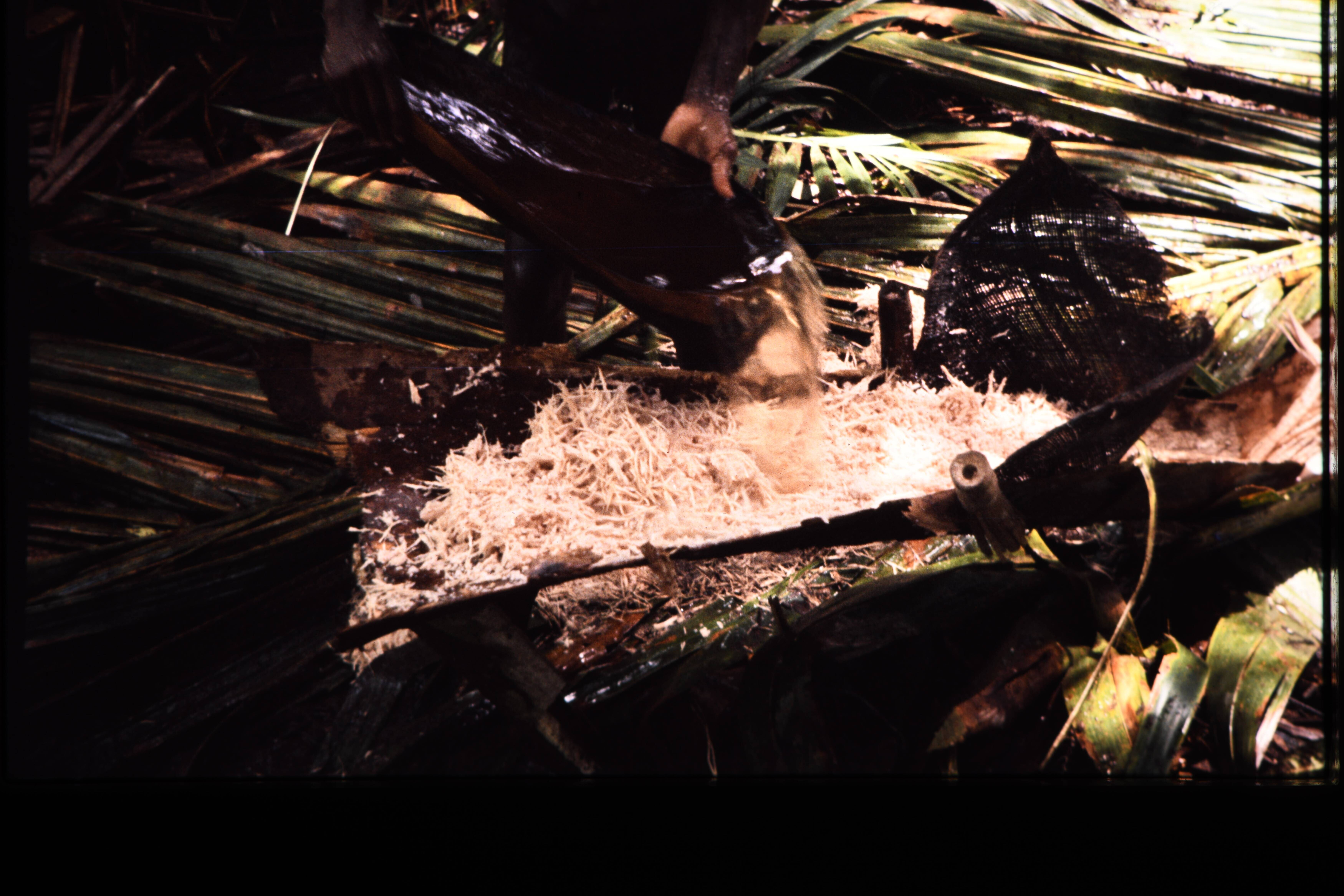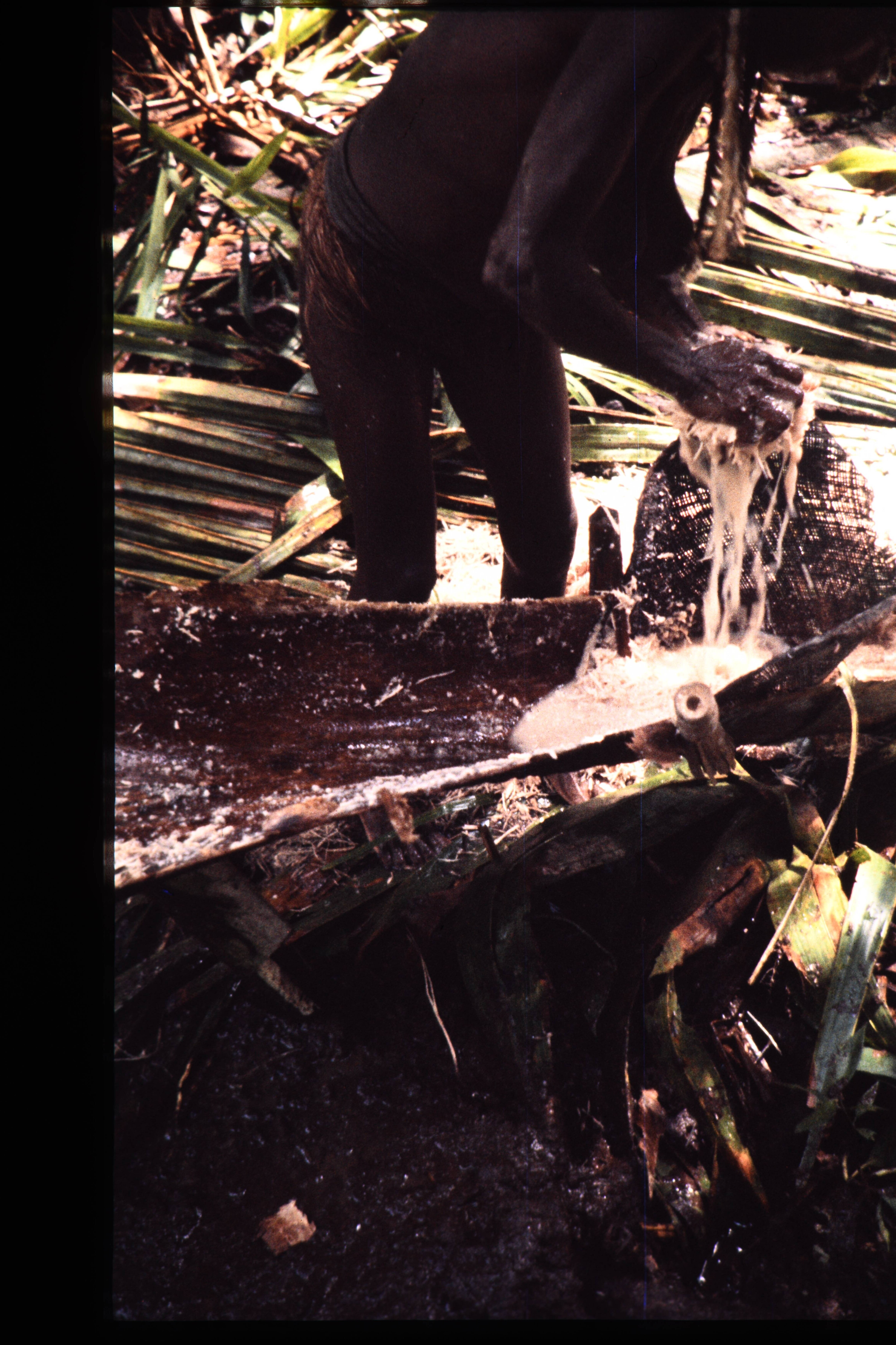 Uitknijpen dot sago.