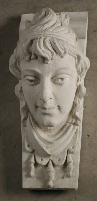 Gevelkop, vrouw met haarband en halsdoek (pendant 34...