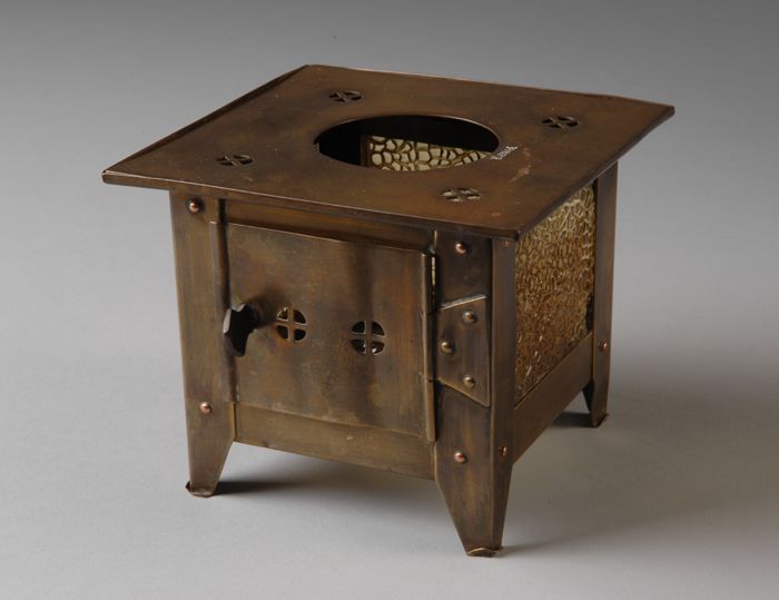 Theelicht van opengewerkt geklonken messing met glaz...