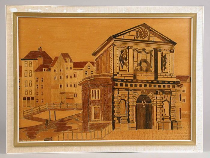 Inlegwerk stadsgezicht 'Oud Rotterdam' met Delftse P...