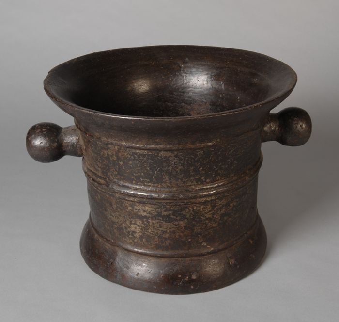 Bronzen vijzel met twee handgrepen