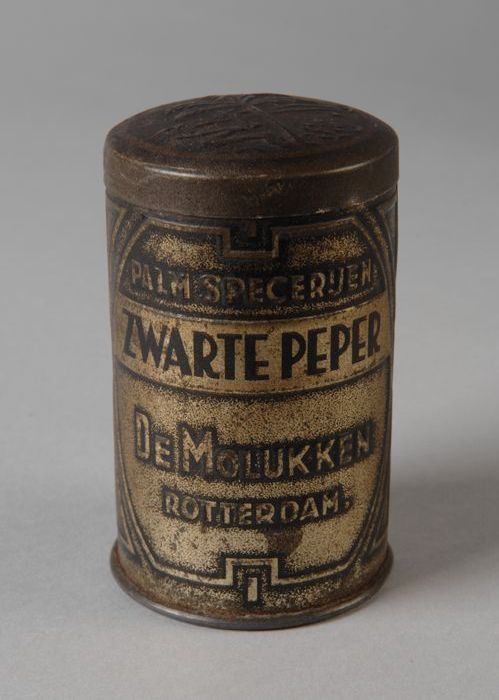 Klein rond blik met los deksel, "Palm Specerijen, zw...