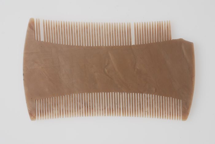 Stofkam, gemarmerd beige kunststof met twee rijen ze...