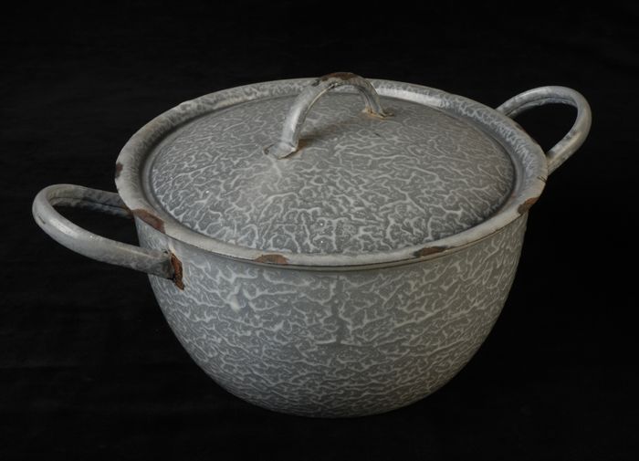 Zwart emaille kolenkit met twee handgrepen