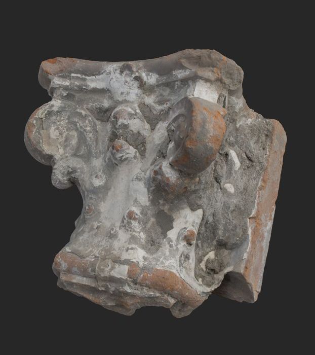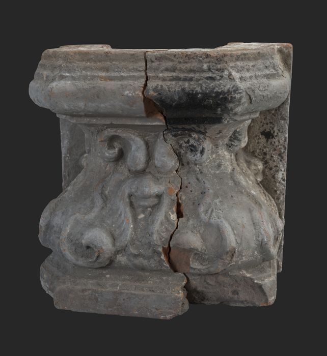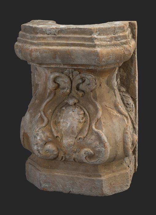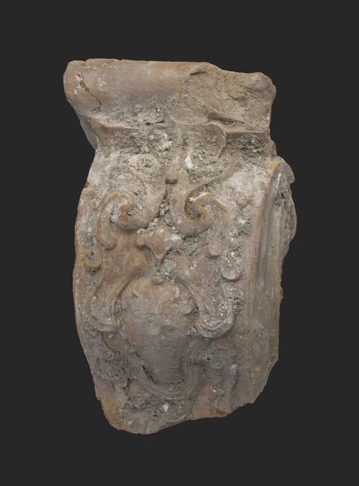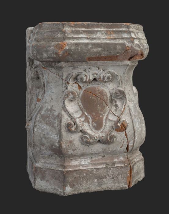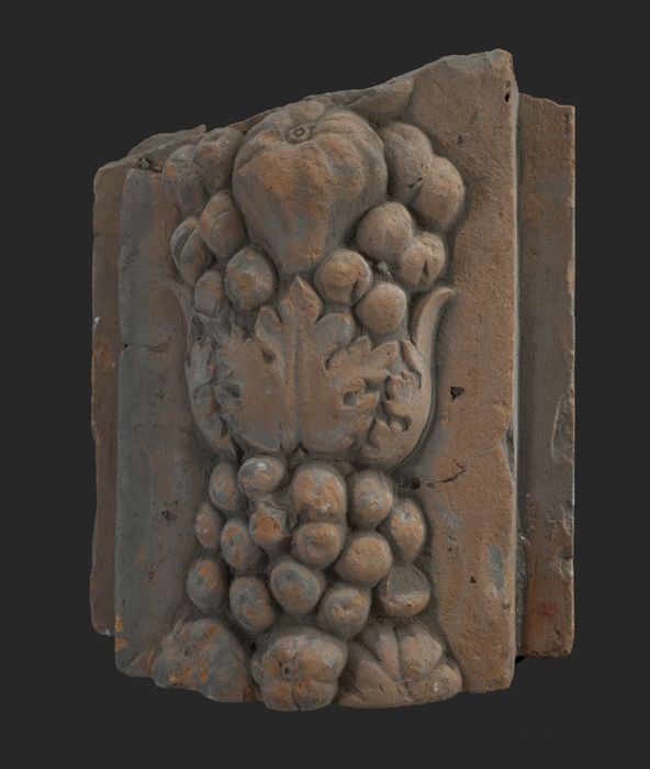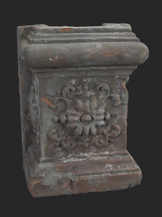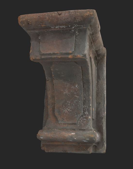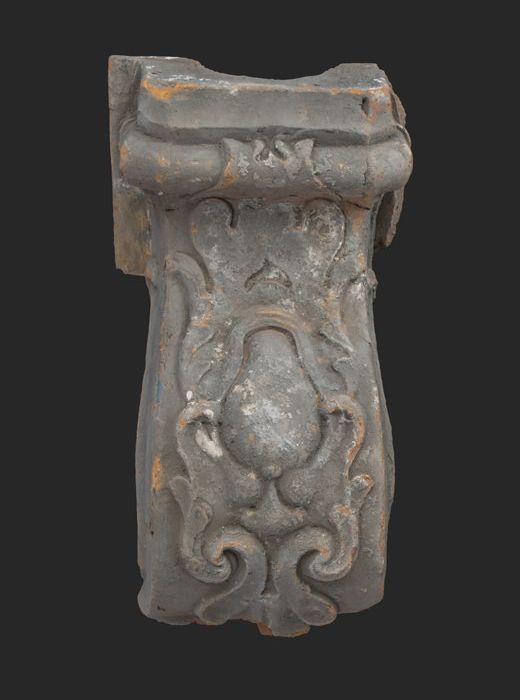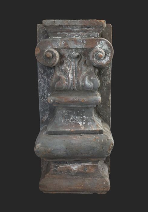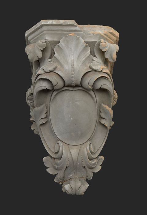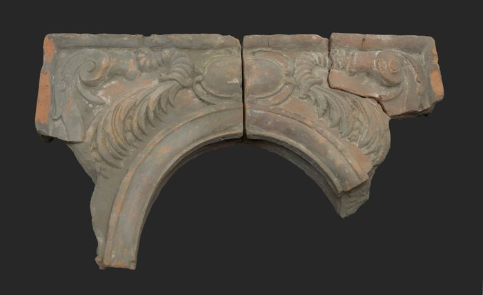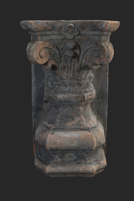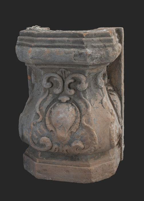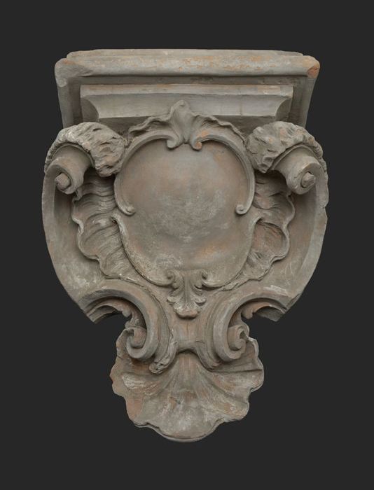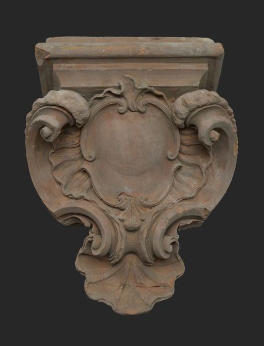 Terracotta console met medaillon en acanthusblad