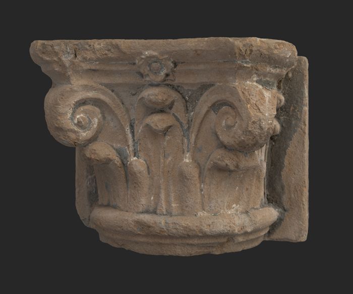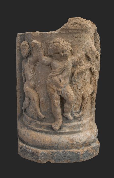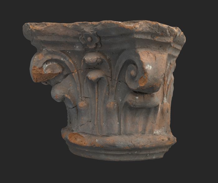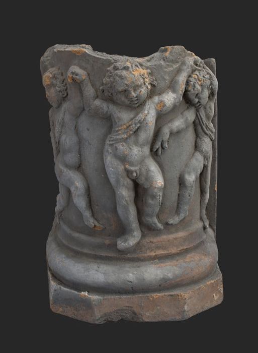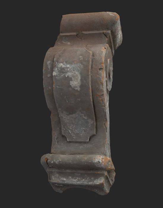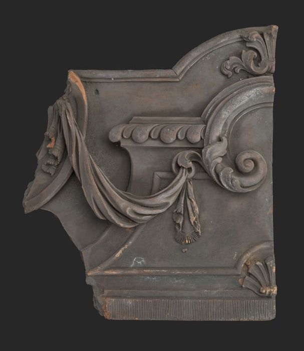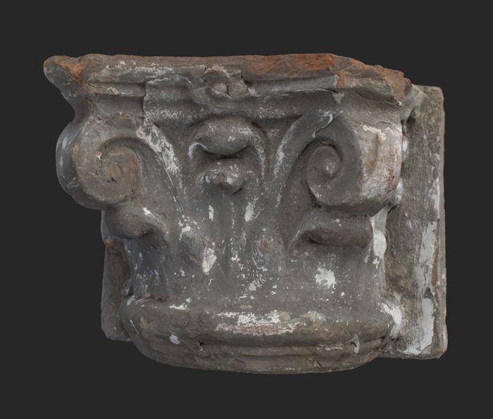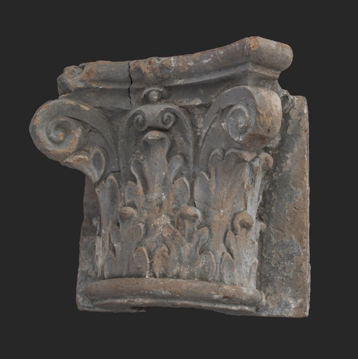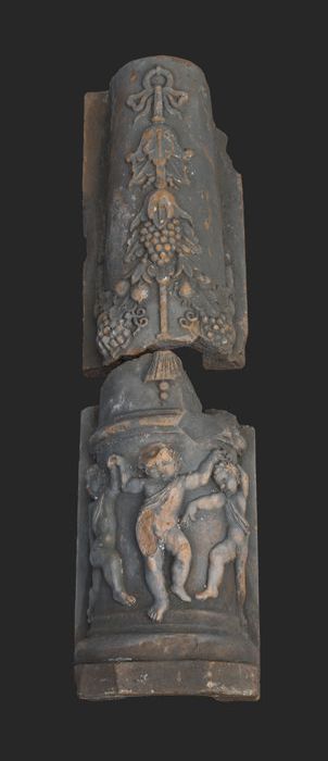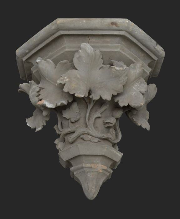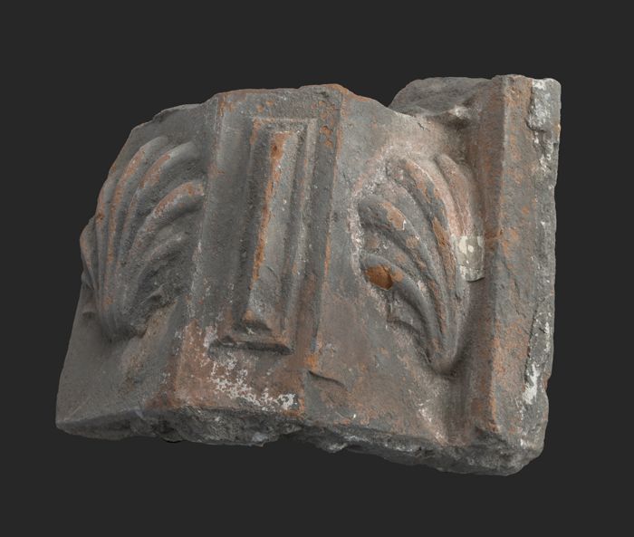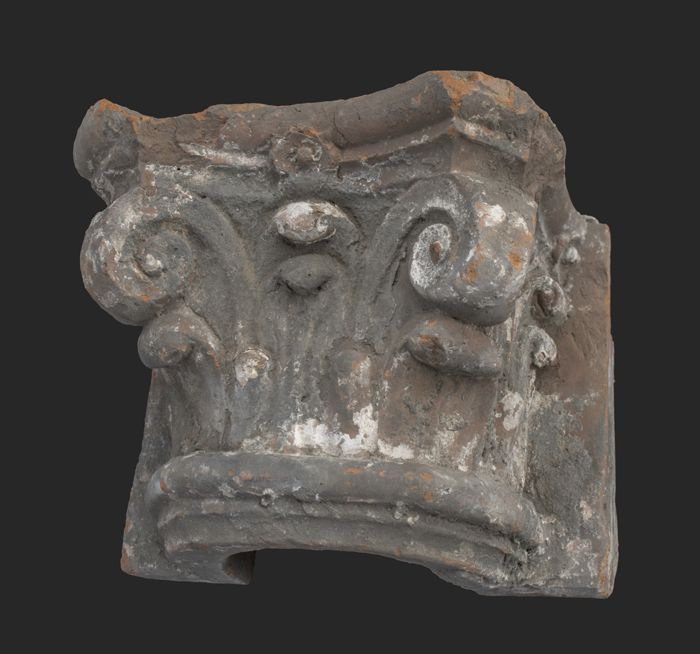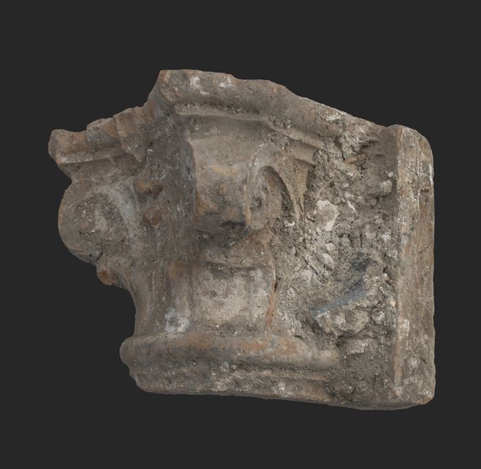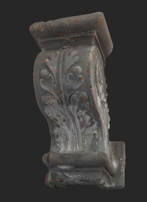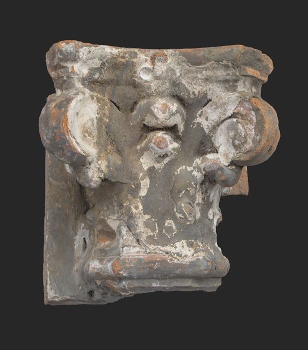 Terracotta console met medaillon en acanthusblad