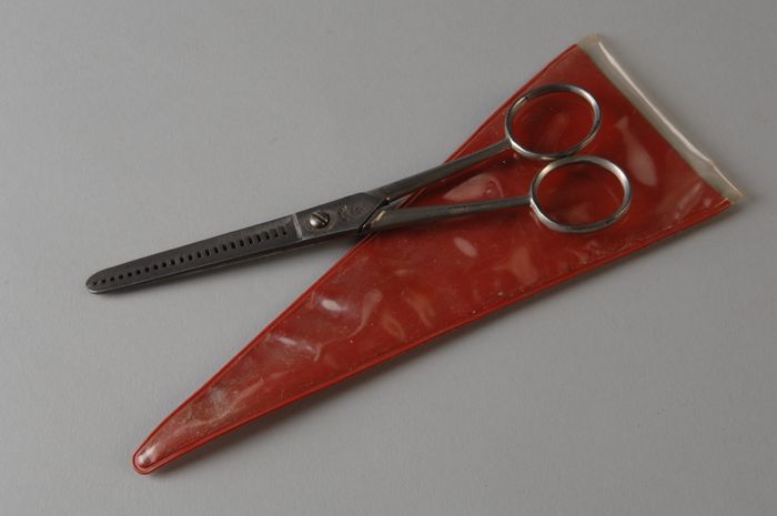 Metalen kappersschaar, uitdunschaar met getande blad...