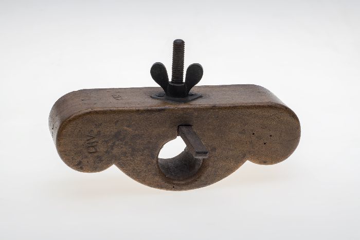 Speciale houten profielblokschaaf, met initialen "CVE"